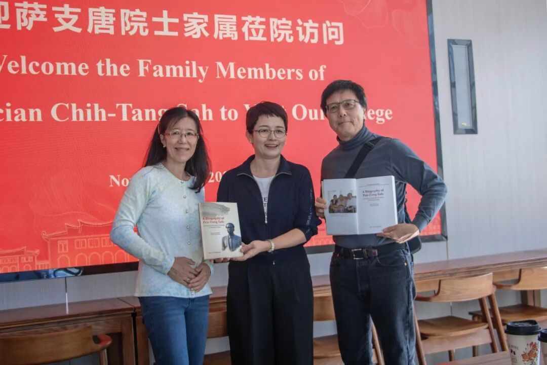 石慧霞代表学院为萨支唐先生子女介绍了院名石,赠送相关校史书籍,李希龙讲述了厦大长汀办学历史对校友文化的影响。双方共同回顾了萨支唐先生的学术成就与崇高精神,同时,因萨先生子女中多位是电子工程学方面的杰出学者,围绕未来合作愿景,双方就学术交流、人才培养等展开积极探讨,达成多项共识。双方一致期待,进一步传承和弘扬萨先生深耕育人、赋能科研的宝贵精神文化遗产,为学院事业高质量发展注入持久动能。
