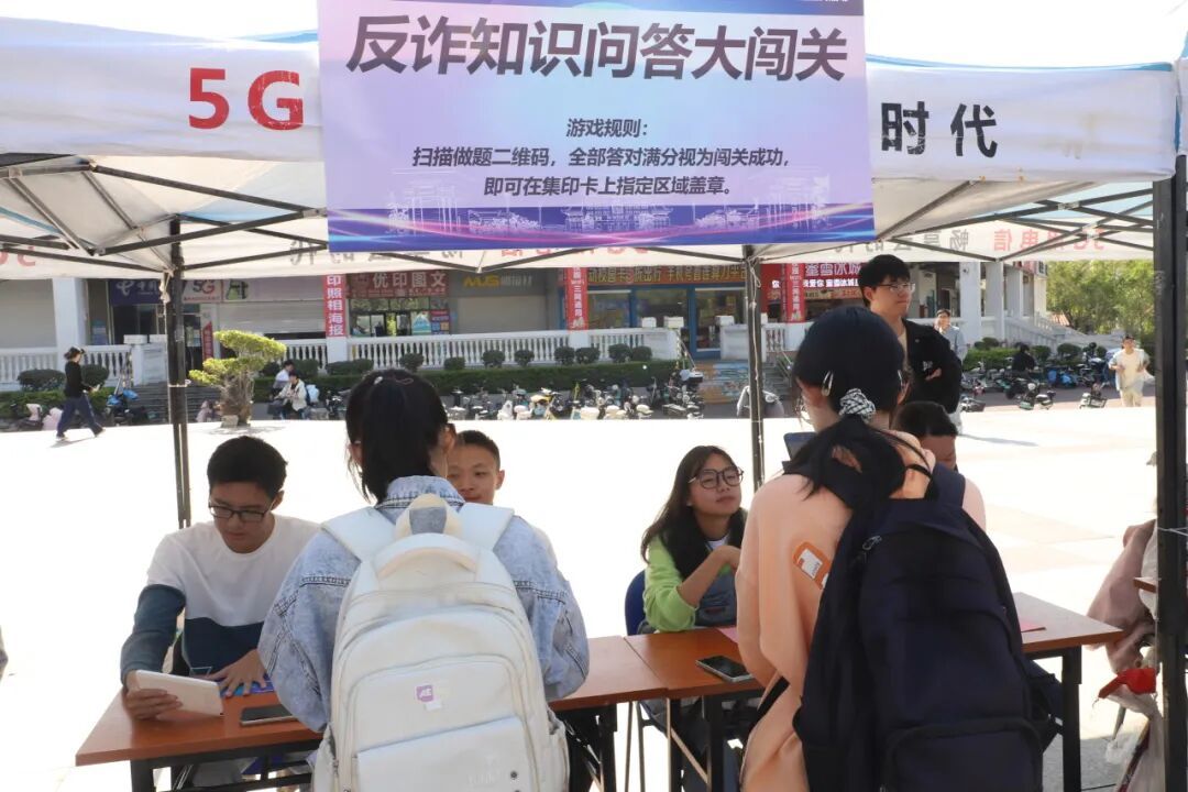 本次活动最大的亮点,在于将八个核心反诈知识点,巧妙地转化为可玩、可感、可挑战的互动游戏。这不仅是一次游园活动,更是一次沉浸式的安全能力锻炼。同学们手持设计精美的集章卡,开启了他们的“闯关之旅”: