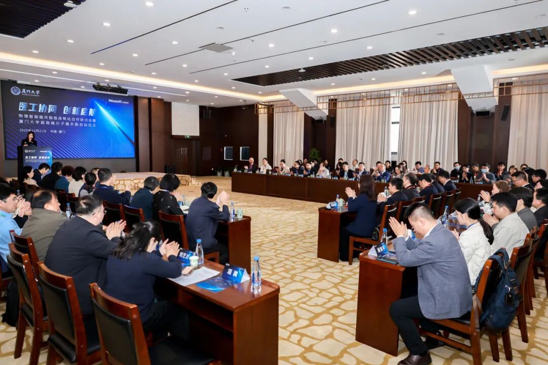 联合启动仪式环节,厦门大学-东软医疗磁共振联合研究中心超高端磁共振研发项目及厦门大学-武汉中科牛津波谱公司战略合作正式启动,标志着多方协同创新进入实质性推进阶段。