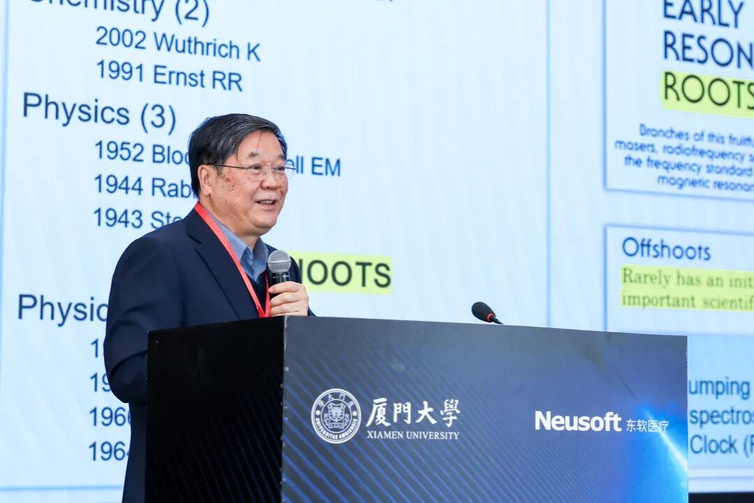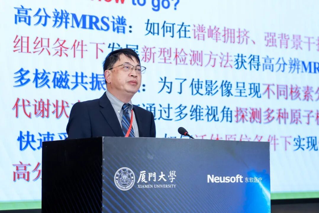 开幕式上,厦门大学党委常委、副校长尤延铖指出,此次启动的厦门大学-东软医疗联合研发中心超高端分子磁共振项目,以及厦门大学-武汉中科牛津波谱公司的战略合作,是学校深化产学研协同、加速成果转化的重要举措。他表示,本次研讨会汇聚高校、企业、医疗机构等多方力量,共同探索国产高端磁共振技术的发展路径,为推动我国高端医疗装备自主创新、服务健康中国建设贡献力量。