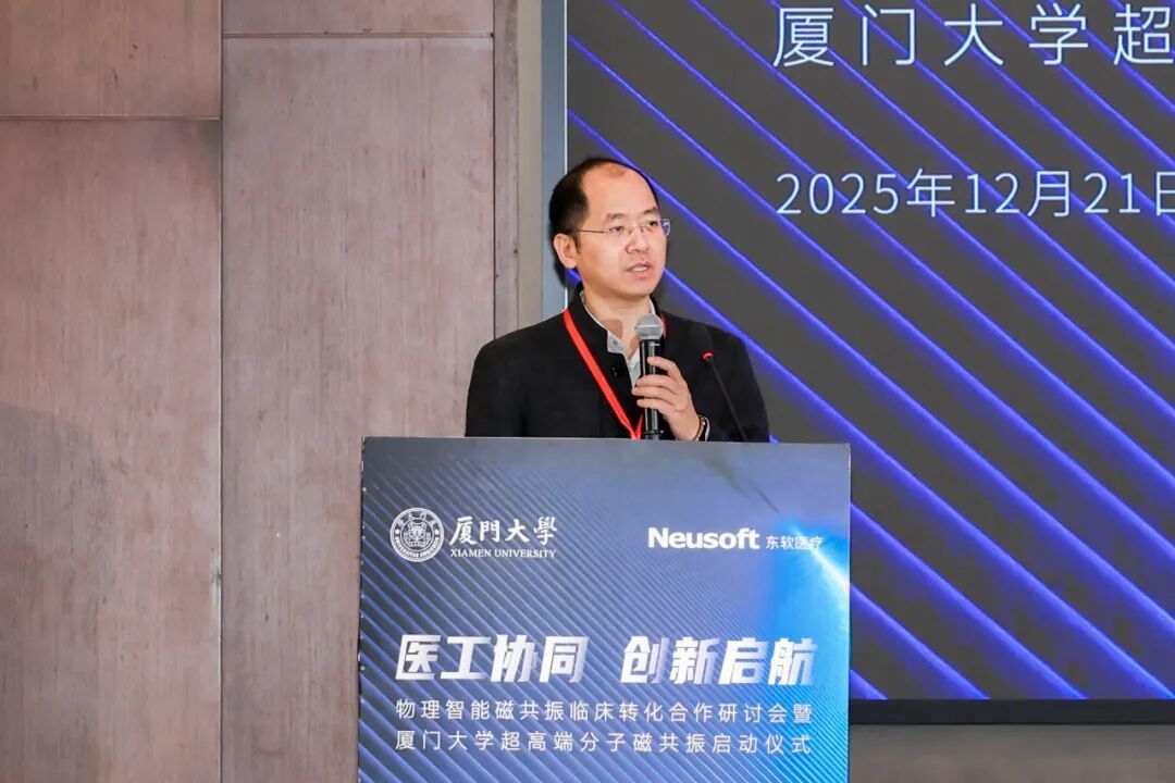 12月21日,物理智能磁共振临床转化合作研讨会暨厦门大学超高端分子磁共振启动仪式在厦门大学翔安校区举办。本次研讨会由厦门大学、东软医疗、中科牛津波谱联合举办。本次会议以“医工协同,创新启航”为主题,汇聚了磁共振领域的众多专家学者、东软医疗及中科牛津波谱等企业代表,多家医院与科研机构的用户代表,以及厦门大学相关学院师生100余人,共同探讨产学研医协同创新机制与未来发展方向。