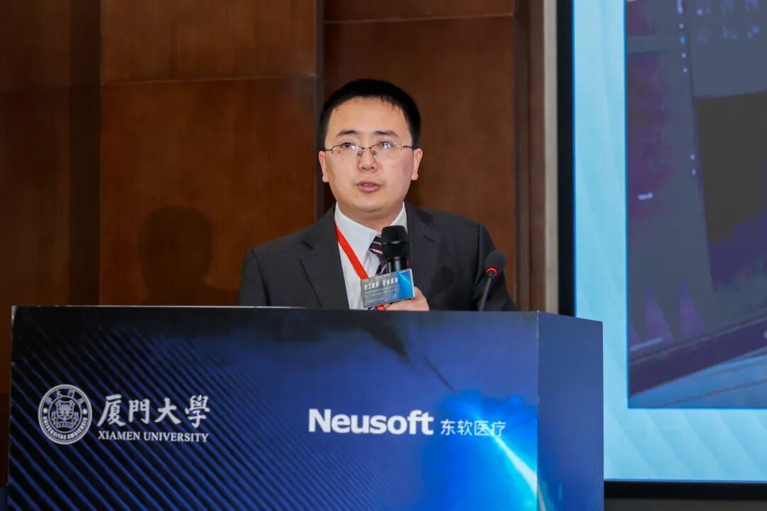 上午主题演讲上,聚焦技术前沿、临床转化与产业协同三大维度,与会嘉宾展开了深入研讨。刘买利院士以《强场生物磁共振》为题,深入解析强场技术对生命科学研究与精准医疗的支撑价值;厦门大学电子科学与技术学院陈忠教授分享了《从单核到多核磁共振代谢影像新技术及其生物医学应用》的前沿成果;东软医疗创新研究院院长陈炳澍女士阐述了《国匠创新 智领健康:共建高端医疗装备创新中心》的产业实践路径;通用技术金砖(厦门)投资发展有限公司孙艺芳总经理则从跨国协同视角,分享了金砖创新基地对高端医疗装备创新的赋能作用。厦门大学电子科学与技术学院屈小波教授与东软医疗蒋先旺博士共同介绍校企联合研发中心的最新项目进展。