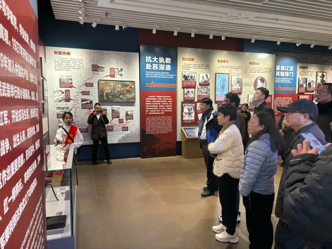 产业调研结束后,师生党员怀着崇敬的心情走进武平博物馆,开展红色革命学习教育。馆内陈列着丰富的历史文物与图文资料,生动再现了武平儿女在革命战争年代的峥嵘岁月。武平是中央苏区的重要组成部分,也是空军之父刘亚楼将军的故乡。在刘亚楼将军生平事迹展区,大家驻足凝视,认真聆听这位从武平走出的开国上将的传奇故事。从战火纷飞的革命年代到新中国成立后白手起家组建人民空军,刘亚楼将军“对党忠诚、智勇双全、从严治军”的精神品质深深震撼着每一位党员。