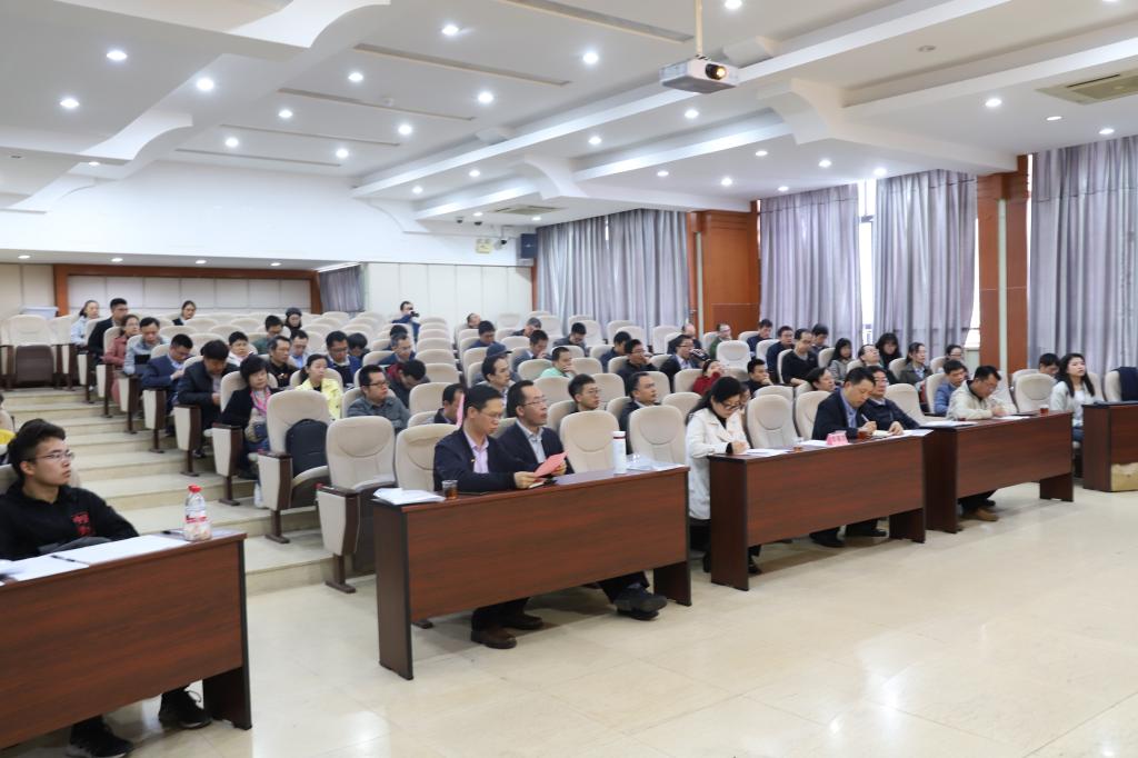 在雄壮的国歌声中,大会拉开了序幕。在上午的工作报告会中,吴国瑛作了“学习贯彻中共十九届四中全会精神”的报告,陈忠作了“学院2019年工作总结和2020年工作计划”的报告,董俊作了“加快学院一流本科专业的建设”的报告,张保平作了“牢记使命,搞好平台建设,促进学院发展”的报告。报告主题鲜明,内容丰富,干货满满,既有总结反思,又有建议措施,与会教职员工反响热烈。