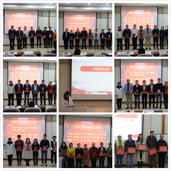 为培养学院教职员工干事创业氛围,吴国瑛宣读了年度科研、教学、宣传、工会工作先进个人表彰决定。其后,吴国瑛与张保平为21名科研工作先进个人颁奖,陈忠、董俊与唐拥华为44名教学工作先进个人颁奖,吴国瑛与方银水为18名宣传工作先进个人颁奖,方银水与沈桂平为17名工会工作先进个人颁奖。在互动抽奖环节,学院领导抽取发放了45个“新春大礼包”,提前预祝学院教职员工春节快乐。