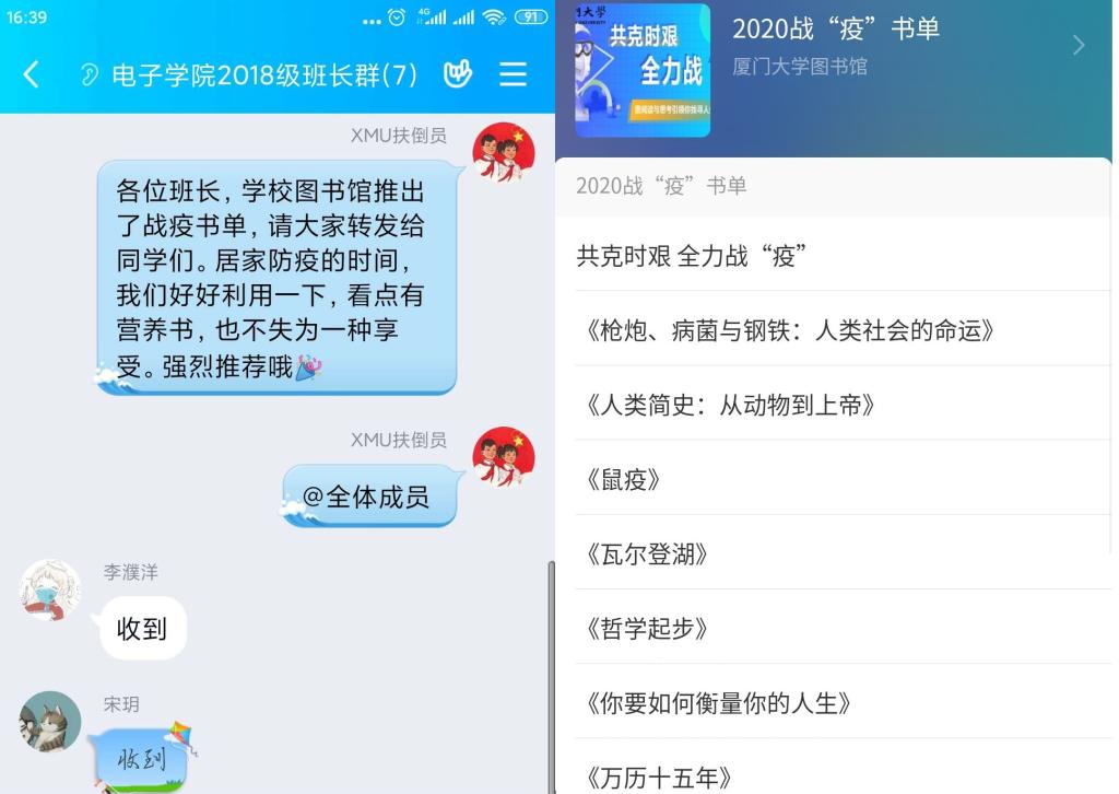 荐一本合适的书。疫情的爆发与蔓延,不断拷问着每个人:人性的善恶?人生的意义?世事的无常?生命的脆弱?疫情就像是一面镜子,照出了不堪,也照出了善良,照出了丑恶,也照出了美好。学院辅导员积极向学生推荐“战疫”书单,希望学生宅有所学,宅有所思,宅有所得。