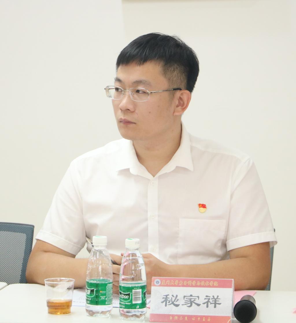 作为电子工程系2017级硕士研究生党支部书记,秘家祥带领支部党员回顾了支部近三年来的建设历程。在厦门大学即将迎来百年校庆之际,他代表支部向学院毕业班党员发起倡议,希望青年党员们能秉承厦大人爱校荣校的优良传统,通过捐款等实际行动来表达对厦门大学的感恩之情。