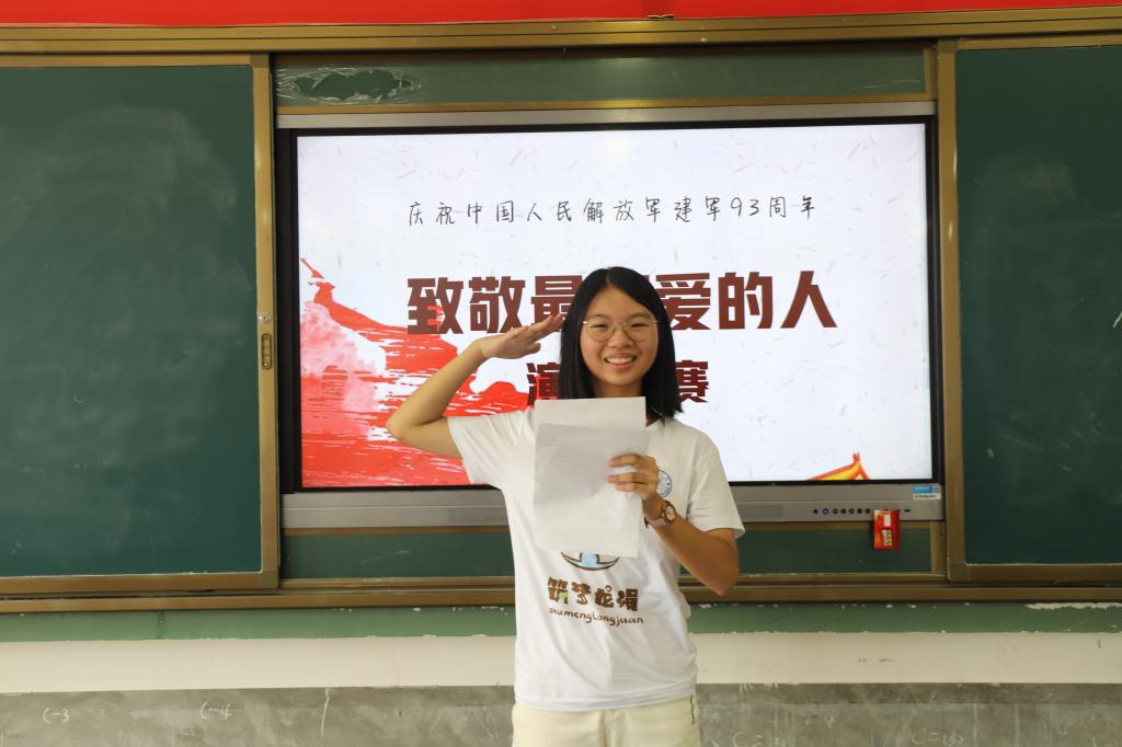 开营仪式恰逢八一建军节,参加夏令营的全体师生参加了简朴而庄重的升旗仪式。在主题班会上,实践队组织营员们观看经典红色电影《建军大业》。观影完的小组讨论尤其热烈,大家迫不及待地把自己的感受与周围人分享。共话段峥嵘岁月,营员们积极参加“致敬最可爱的人”演讲比赛,陈怡婷、肖静涵等营员结合影片,表达了对中国军人的敬佩之情。营员李奕涵、李俊杰、肖艺杰等则由此联想到新冠疫情间逆行的英雄们,表达了要肩负起新时代青年的责任感以及抗疫必胜的信心。