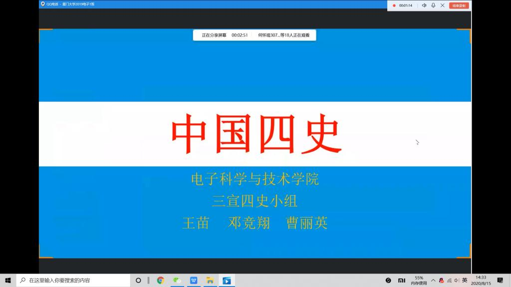 “芯读四史”不仅是厦大电子青年开展的一次“云实践”活动,也是学院开展“四史”学习教育活动的举措之一,更是学院“不忘初心、牢记使命”主题教育的后续与延伸。通过“芯读四史”活动,进一步引领“芯”青年坚定“四个自信”,自觉做到知史爱党、知史爱国。