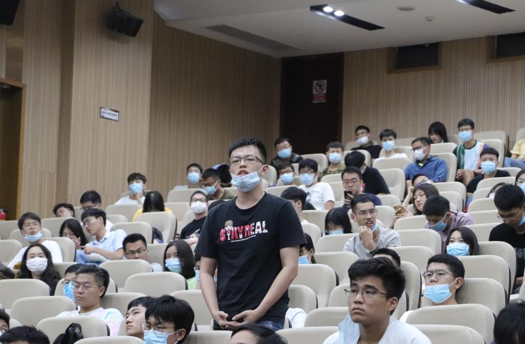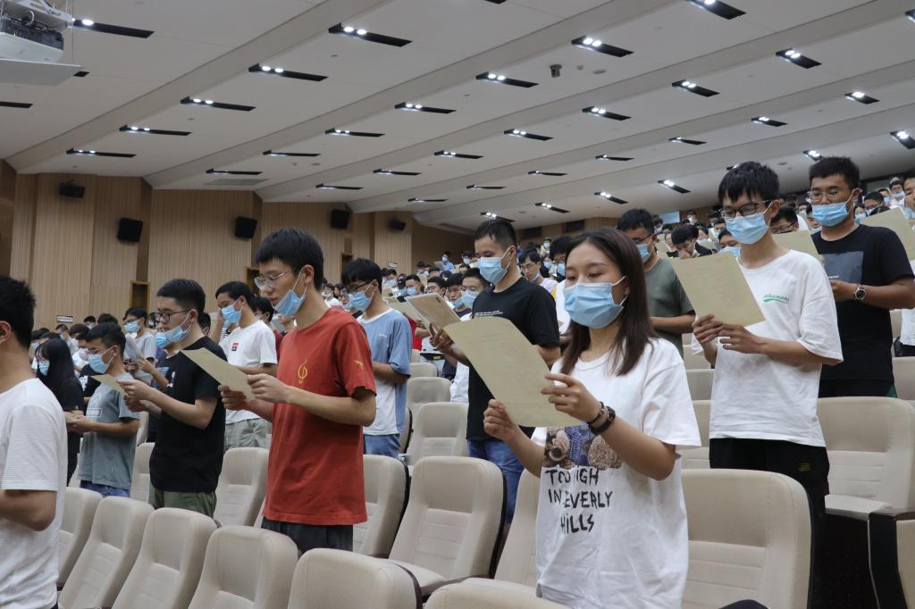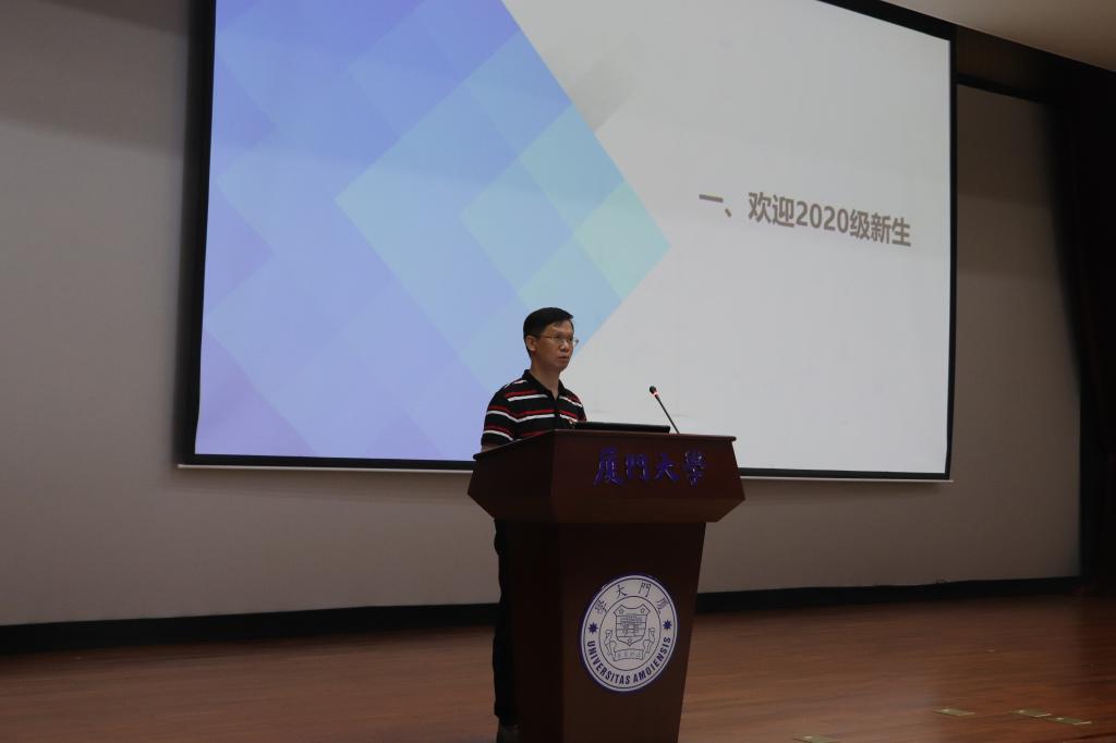 方银水副书记就入学新生概况进行简单介绍,并从科创竞赛、创造性劳动、毕业就业等方面对学生工作进行重点介绍。希望同学们以学习为重,积极参加学生工作及学生活动;多留在厦门、福建,多到华为、三安、大型国企等重点企业就业;多关注西部贫困地区和国家重点行业,学成之后多到国家最需要的地方建功立业。就安全教育方面,他表示要严格做到“八防”,牢记安全是前提,疫情防控期间,仍需严格执行每日健康信息“打卡”制度。最后,他深情寄语学生,希望他们:一要珍惜学习时光,心无旁骛求知问学,学习专业基础知识,学习党的创新理论,党员和入党积极分子要积极运用“学习强国”平台加强学习;二要永怀感恩之心,永葆家国情怀,传承厦门大学“四种精神”,使自己成为有大爱大德大情怀的人;三要有使命感,用中国梦激扬青春梦,把自己的远大理想落实到今后的学习、科研和学生工作中,让使命担当成就自己奋发有为的人生高度。
