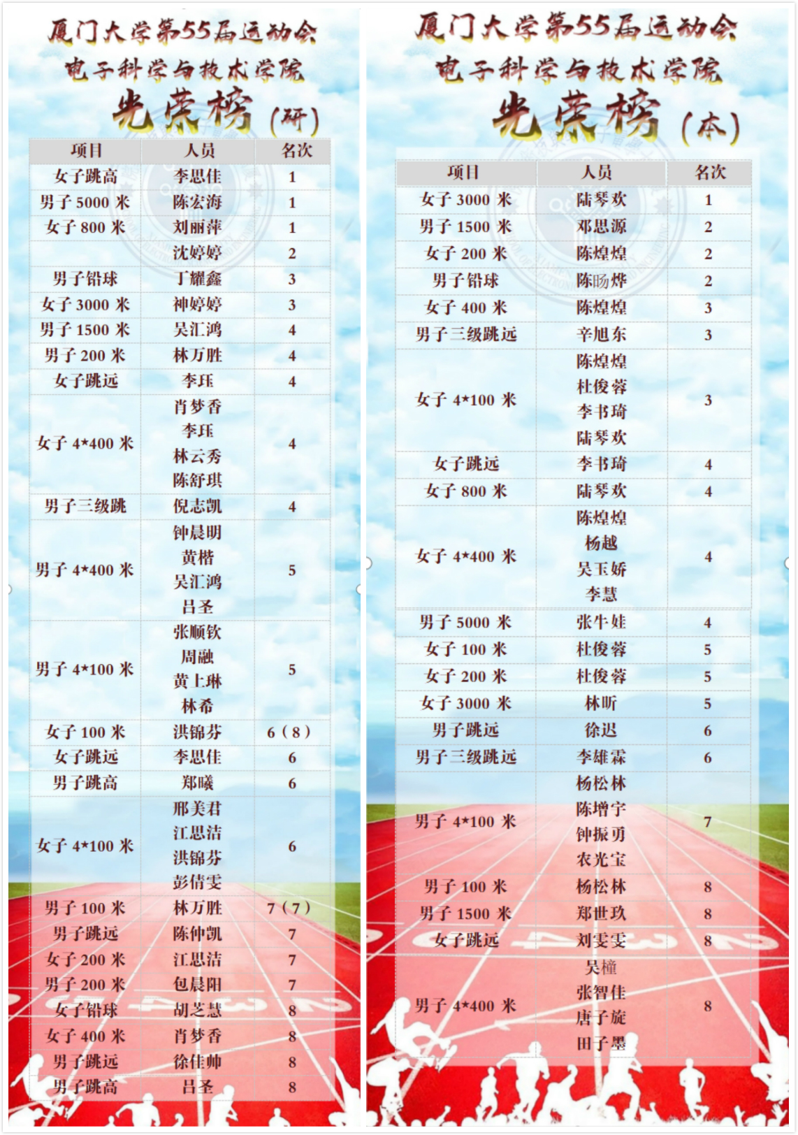 11月13日至14日,厦门大学第55届学生田径运动会在翔安校区隆重举行,这也是电子运动健儿们第一次在翔安校区参加学校运动会。