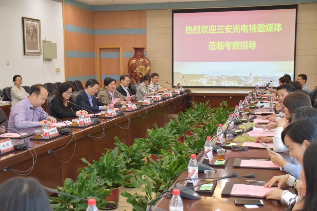十一月是收获的季节。厦门大学作为全国首批4所建设国家集成电路产教融合创新平台高校之一,与三安光电股份有限公司共建的第三代半导体工艺分平台正如火如荼建设中。11月14号上午,三安光电股份有限公司特邀新华社、人民日报、央视财经等14家国内主流媒体代表走进学校,考察国家集成电路产教融合创新平台,并为平台建设发展提出了宝贵建议。三安光电股份有限公司总经办主任郑勇、副主任肖珊春,学院党委书记吴国瑛、院长陈忠、副院长蔡励元、微电子与集成电路系副主任周剑扬、李澄等参加。