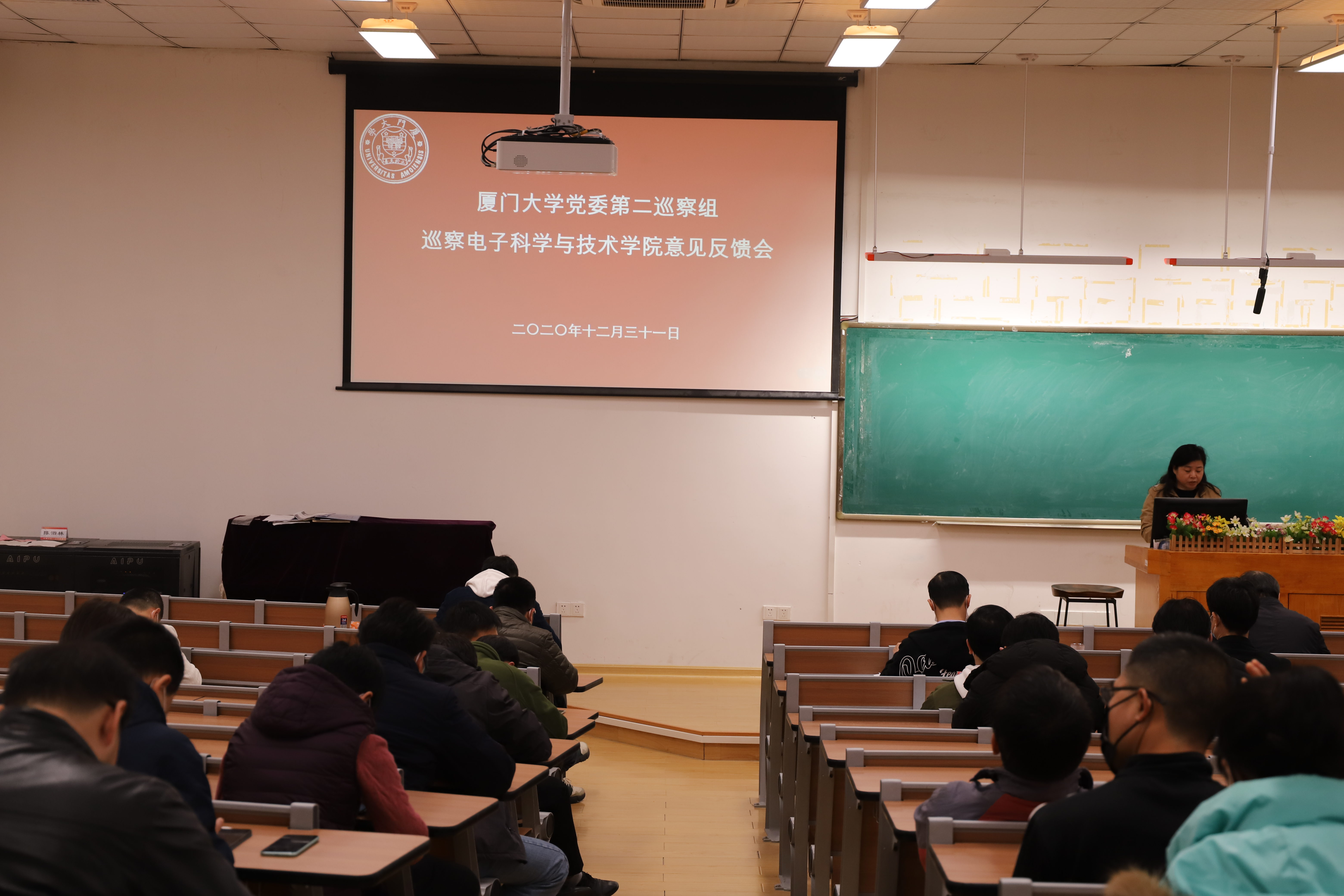 12月31日下午,厦门大学党委第二巡察组巡察电子科学与技术学院意见反馈会在海韵园物理大楼117室召开。校校纪委副书记、纪委办主任、巡察办主任林金枝,第二巡察组组长叶鹏飞,联络员郑建斌、刘黛茜出席会议。会议由电子科学与技术学院党委书记吴国瑛主持。学院党政领导班子成员、全体教职工参加大会。