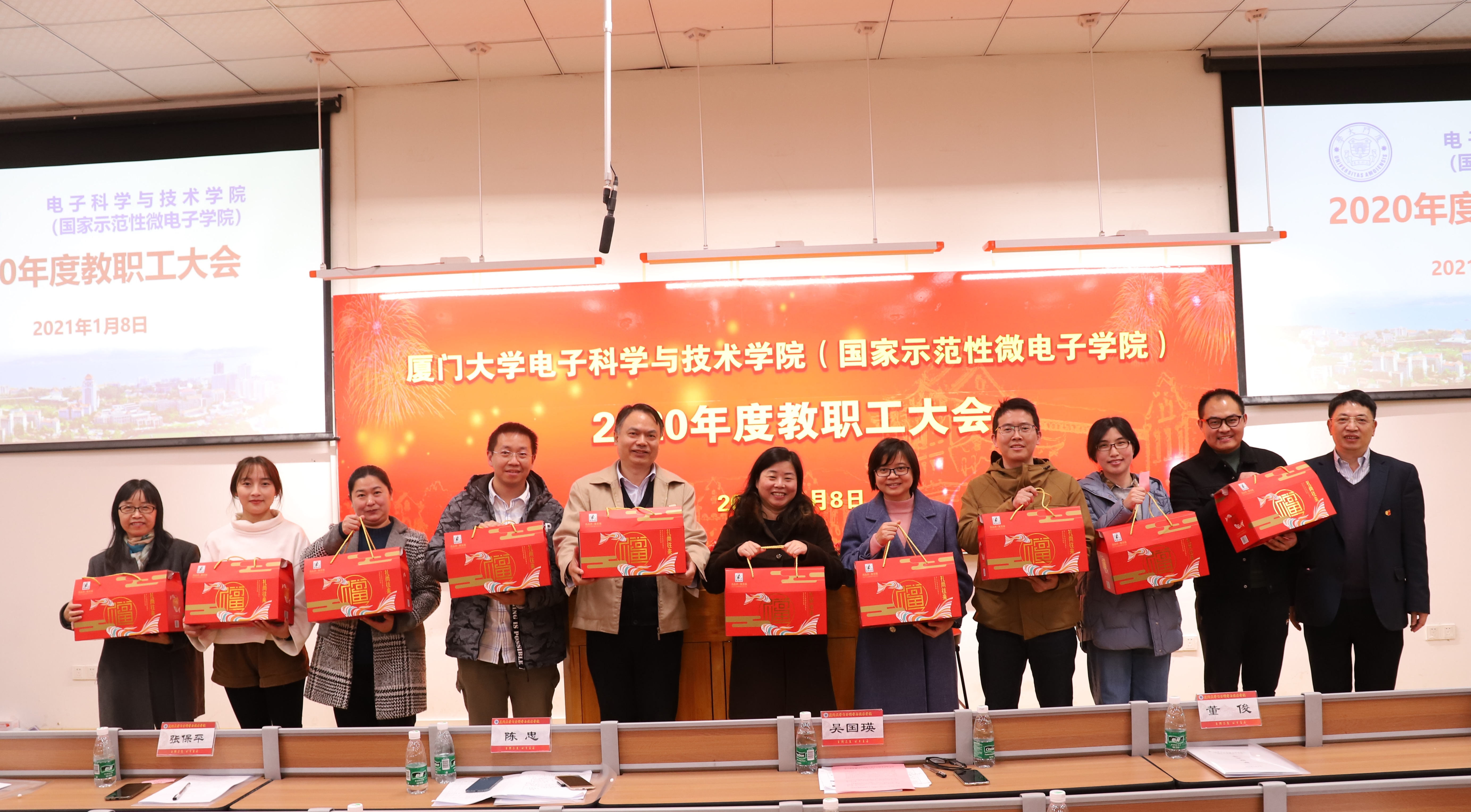 1月8日,电子科学与技术学院(国家示范性微电子学院)2020年度教职工大会在物机大楼117报告厅举行。本次会议围绕学院“十四五”建设目标,旨在以一流党建为引领,以立德树人为根本,以改革创新为动力,以内涵发展、产教融合为主线,研究如何进一步加快推进学院人才培养、科学研究、学科建设等各项工作。学院党委书记吴国瑛,院长陈忠,副院长董俊、张保平、蔡励元,党委副书记方银水、郑莉出席本次会议,学院专业教师、工程技术人员、党政管理人员以及博士后参加本次会议。郑莉副书记主持上午议程,方银水副书记主持下午议程。