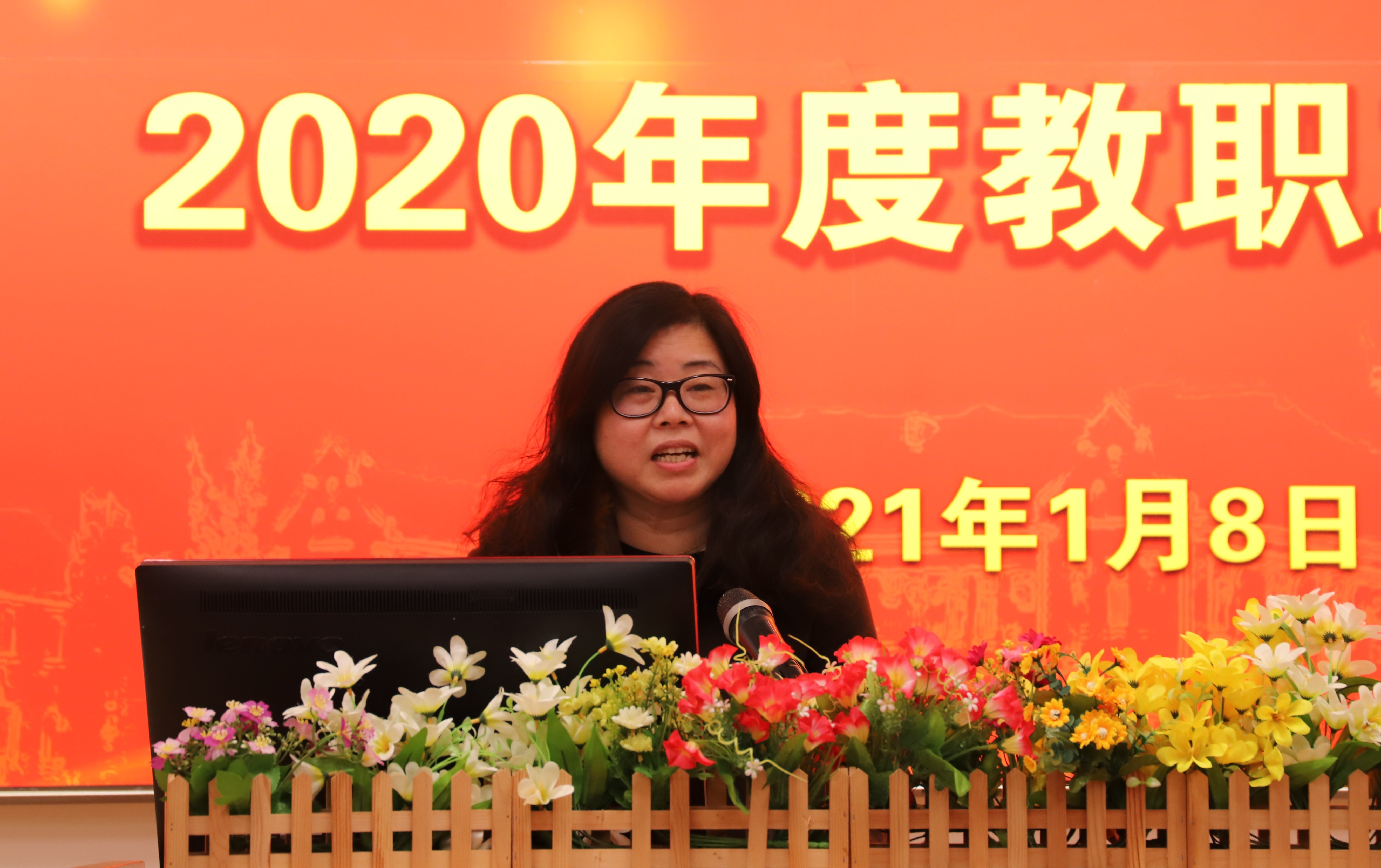 最后,吴国瑛讲授了专题党课《学习贯彻党的十九届五中全会精神》,并做总结讲话。她深入解读了党的十九届五中全会公报,并号召全院教职工要以习近平新时代中国特色社会主义思想为指导,全面贯彻党的十九届五中全会精神,认真落实学校的各项工作部署,为建党建校“双百年”献礼。最后,她强调了新冠肺炎疫情防控工作的重要性,并要求全院教职员工在做好疫情防控的前提下,继续团结创新齐奋进,凝心聚力创佳绩,为学院“十四五”贡献力量!