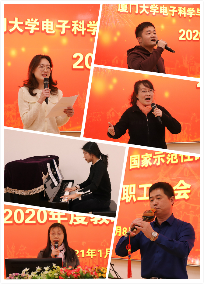 下午,学院工会组织了文艺演出和抽奖环节。豫剧《我家在哪里》、葫芦丝《侗乡之夜》、男声独唱《同桌的你》、钢琴独奏《肖邦降b小调钢琴谐谑曲》、女声独唱《今夜无眠》,精彩节目应接不暇,会场数次响起热烈的掌声。在互动抽奖环节,学院领导抽取发放了60个“新春大礼包”,并提前预祝学院教职员工春节快乐。