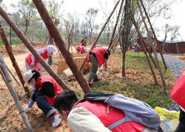 植树活动现场,在“八闽园”的林业技术人员的指导下,同学们互帮互助,干劲十足,培土、拔草,用实际行动投入到绿化事业当中,莆田的月季花、厦门的三角梅、漳州的水仙花、三明的红豆杉、福州的榕树、泉州的棕榈等多个品种的苗木扎根“八闽园”,为校园增添一抹生机,为百年校庆送来春天的暖意。