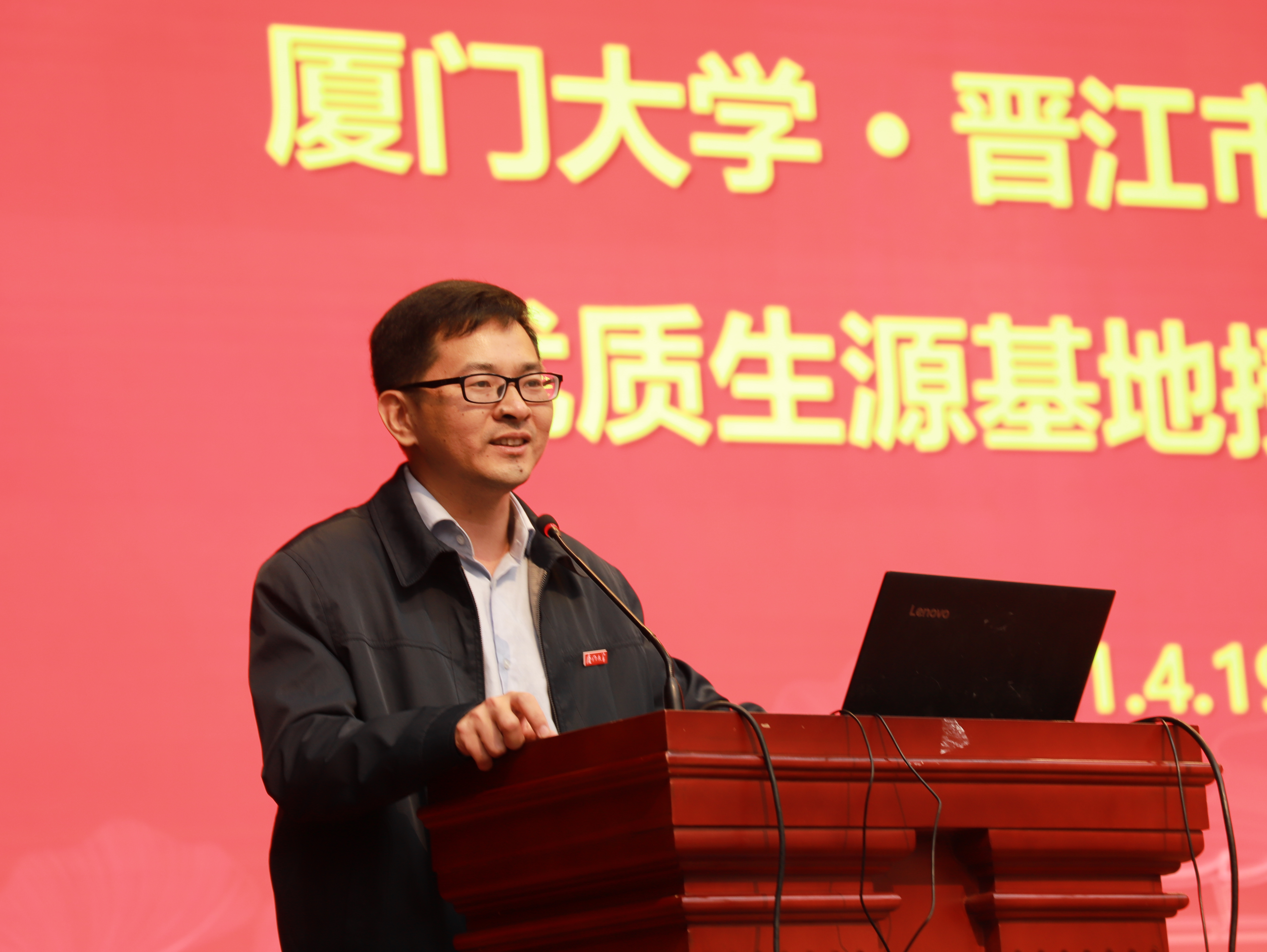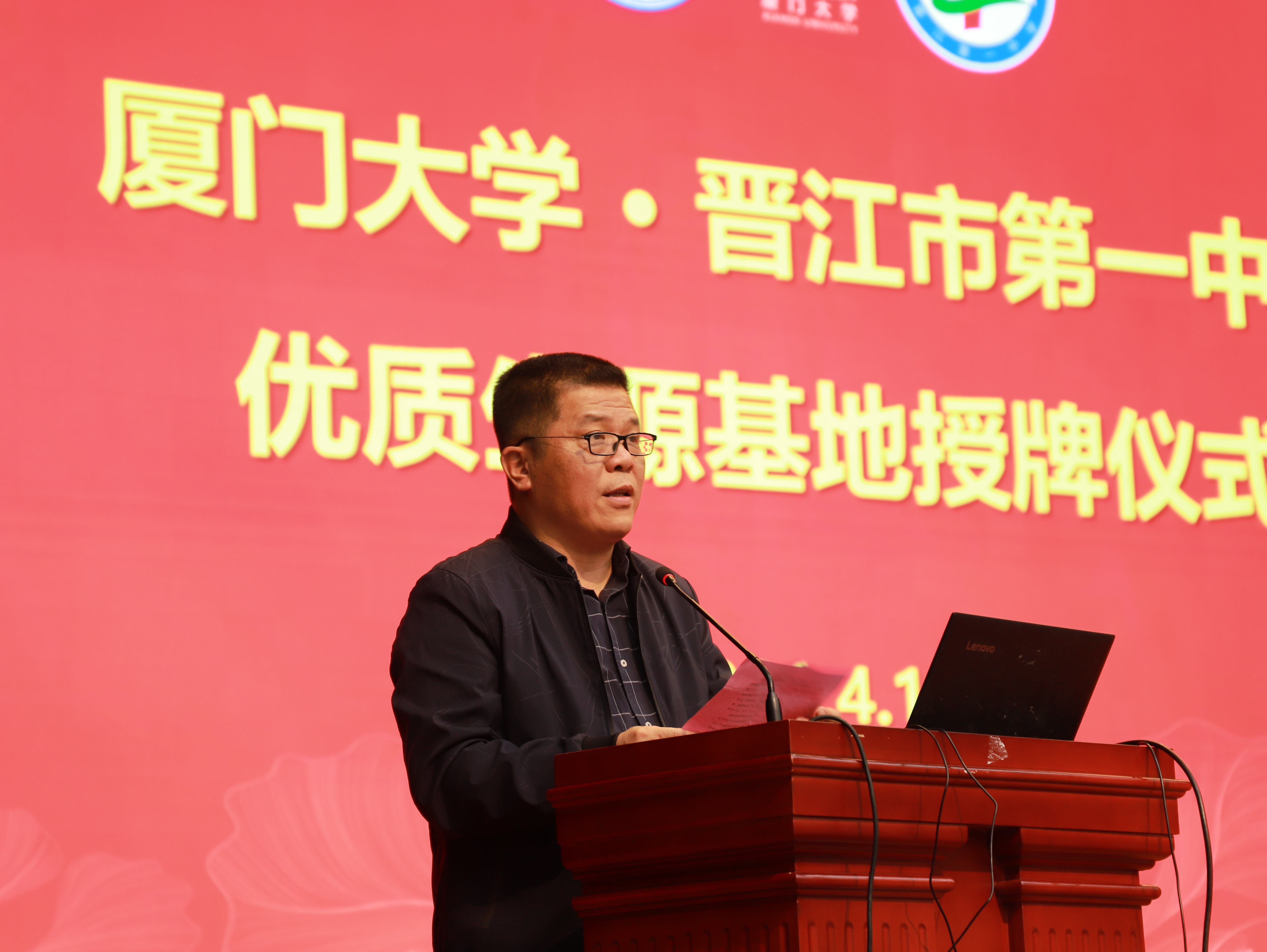 仪式上,陈泗林副处长对晋江一中长期为厦门大学输送大批优质生源表示感谢,他期待通过优质生源基地的平台建设,进一步推动双方深度合作。同时,他希望晋江一中的同学们将来能够踊跃报考厦门大学,期待更多优秀的学子能够圆梦“南方之强”。
