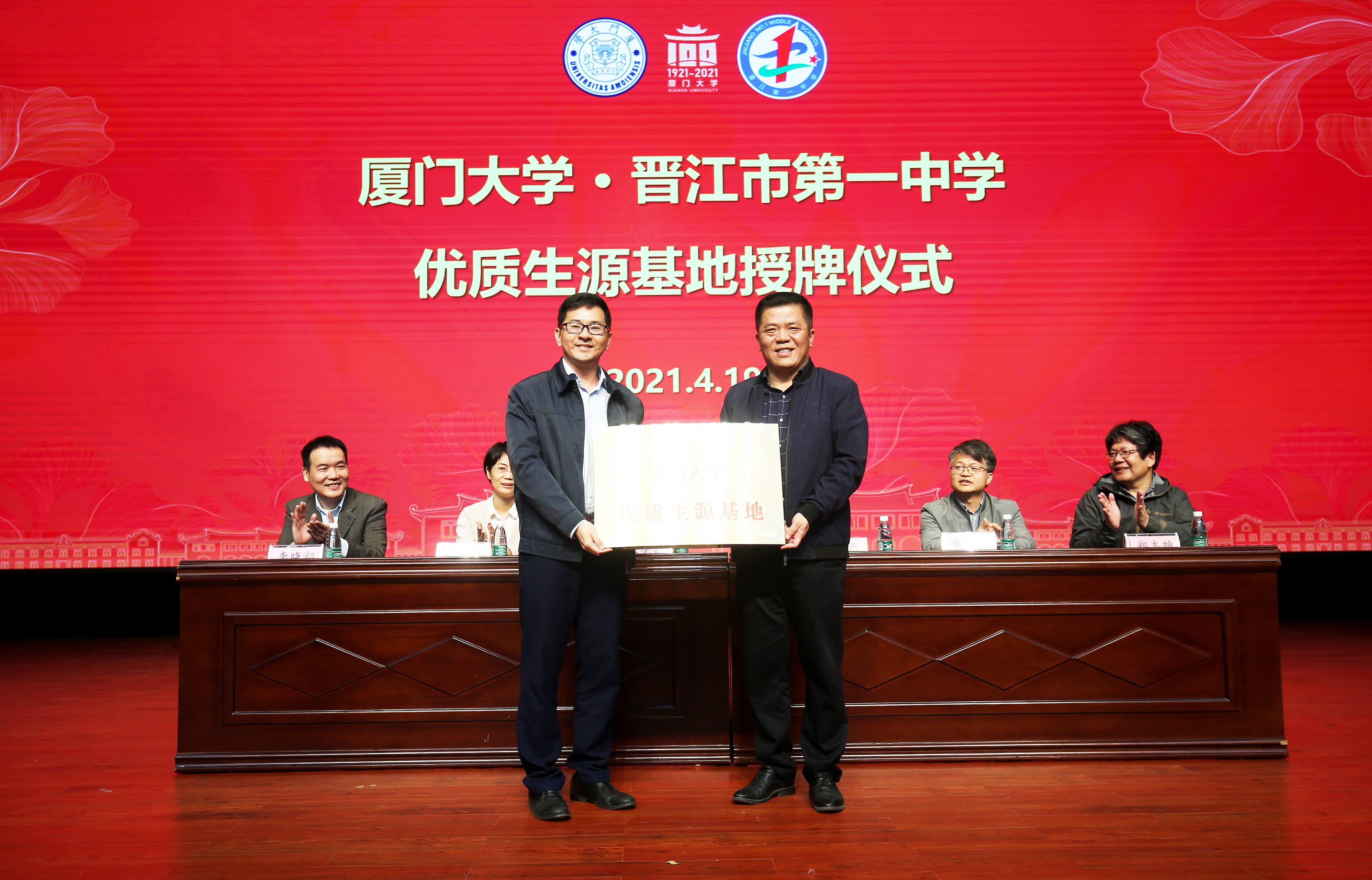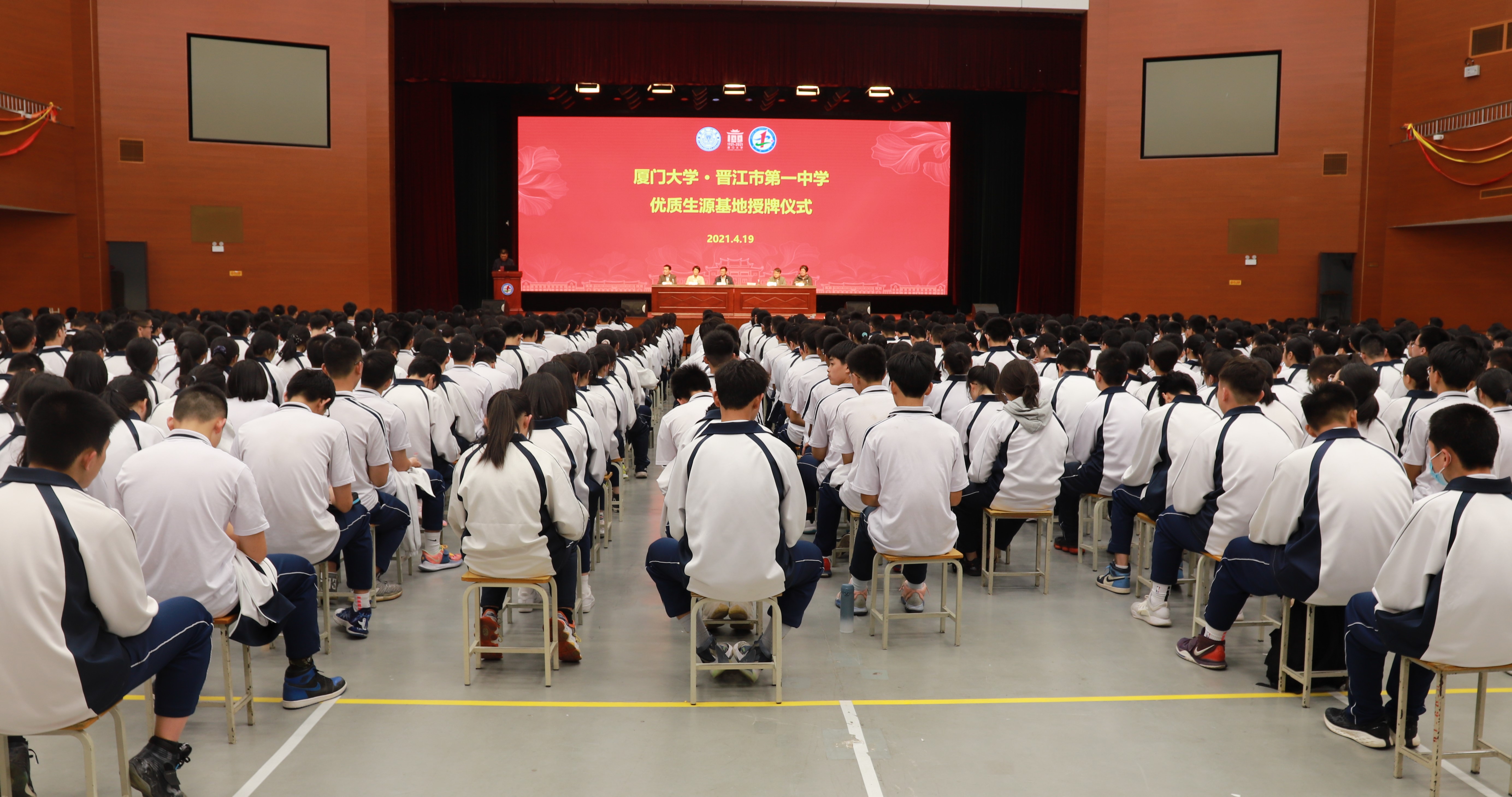 为加强厦门大学与重点生源中学的交流联系,做好优秀学生的衔接培养,建立合作共赢的长效机制,4月19日,厦门大学学生工作部(处)陈泗林副处长、电子科学与技术学院党委郑莉副书记,电子科学与技术学院李晓潮教授等一行赴晋江一中参加“厦门大学优质生源基地”授牌仪式。晋江一中校长陈燎原、副校长郑志雄等校领导及700余名学生代表出席了活动,活动由晋江一中校长助理徐谋树主持。