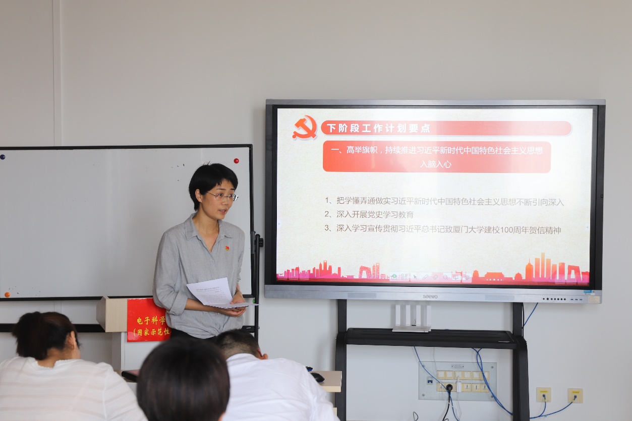 会议伊始,郑莉肯定了学院在过去一年宣传工作中所取得的成绩,并就意识形态工作、去年工作开展情况和下阶段工作等方面提出了指导性意见。她强调,意识形态工作是一项极端重要的工作,必须落实好意识形态工作责任制,做好新时代宣传思想工作,牢牢掌握意识形态工作领导权。她指出,过去的一年,学院在疫情防控、产教融合、创新创业赛事等方面的亮点宣传取得了不错的效果。她认为,学院宣传工作的开展离不开广大师生的支持,希望学院师生提高宣传意识,善于谋划,突出亮点,做好正面宣传。最后她表示,学院下阶段的宣传工作要坚持以习近平新时代中国特色社会主义思想为指导,坚持立德树人,筑牢思想根基,继续唱响厦大电子好声音。