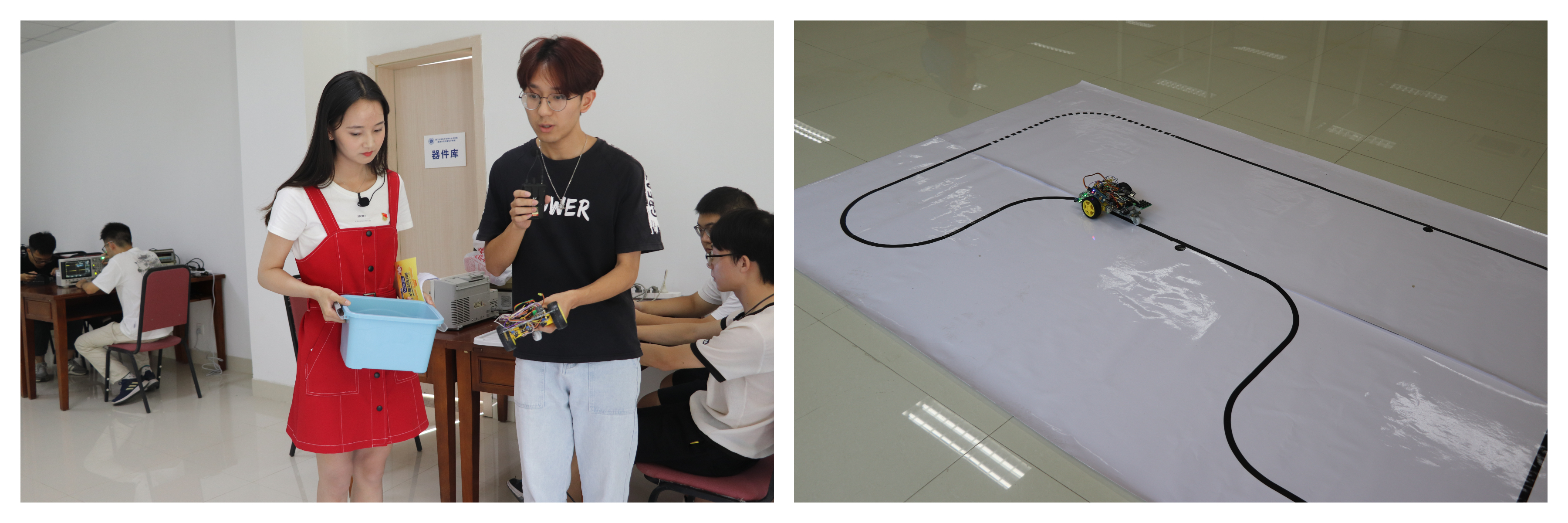 在学院本科生教学中不乏许多有趣的内容,如智能车、无人机等。在学院实验教学示范中心常务副主任陈华宾老师的带领下,大家共同走进了“电子创新实践基地”,领略“电子人”的风采!