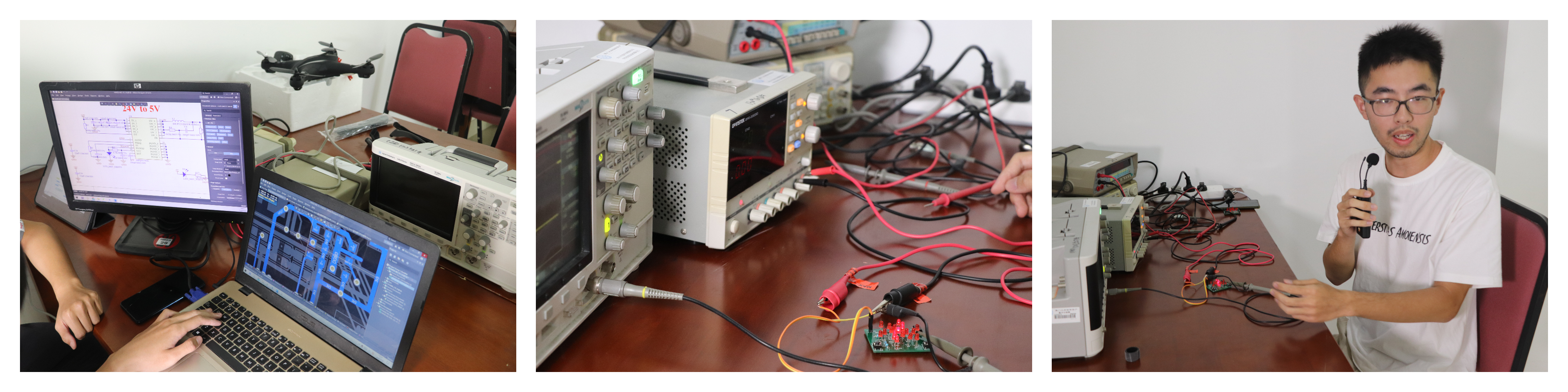 实验室内,同学们向观众展示了正在绘制的电路板版图,并对仪器进行了调试,还科普了实验室中的“四件套”:信号发生器、示波器、稳压电源和万用表。全程干货满满,收获多多。