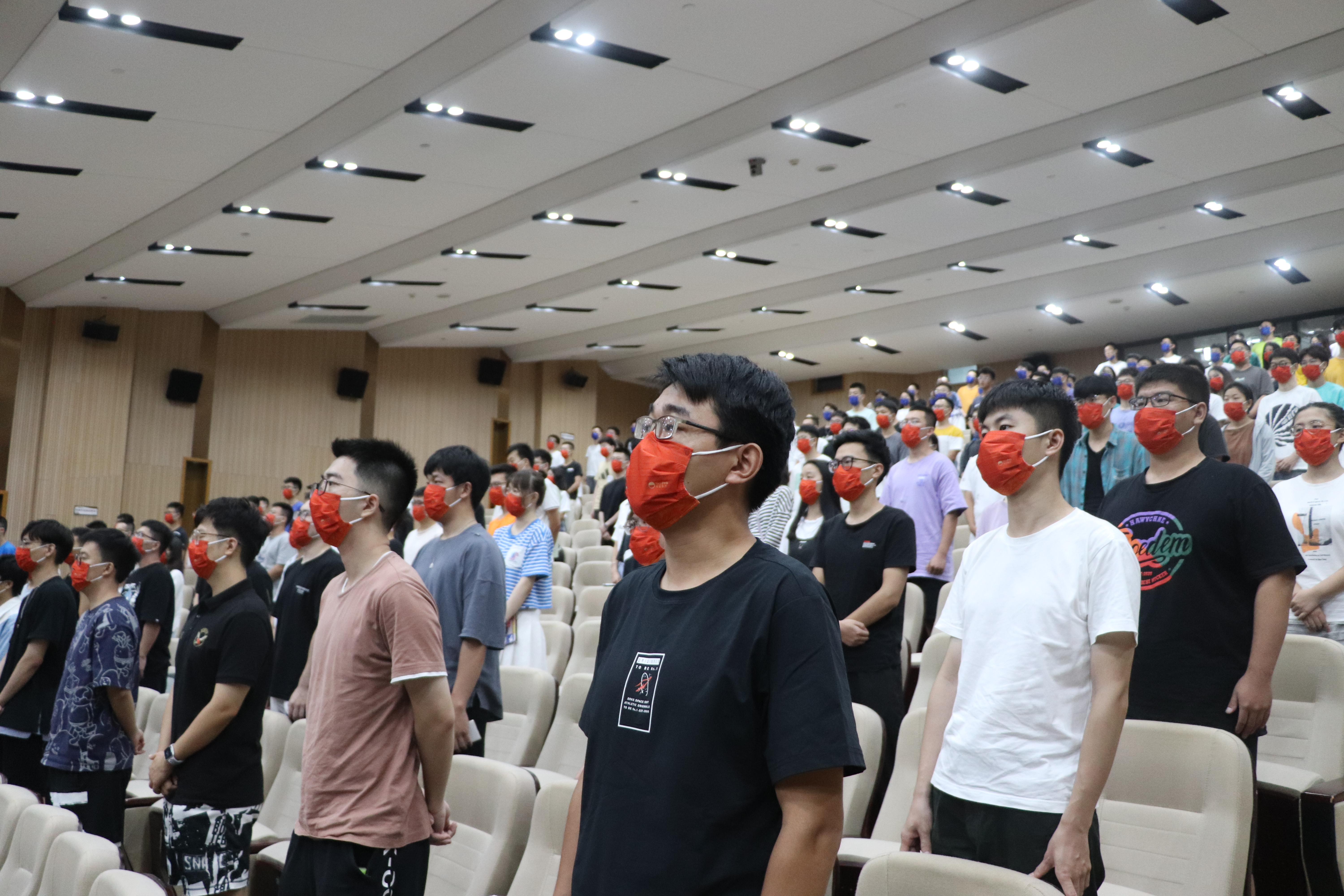 典礼开始前由辅导员刘锦锗宣读《疫情防控常态化规定》,活动严格落实所有人员全程佩戴口罩、入场前测量体温、间隔入座等疫情防控管理。