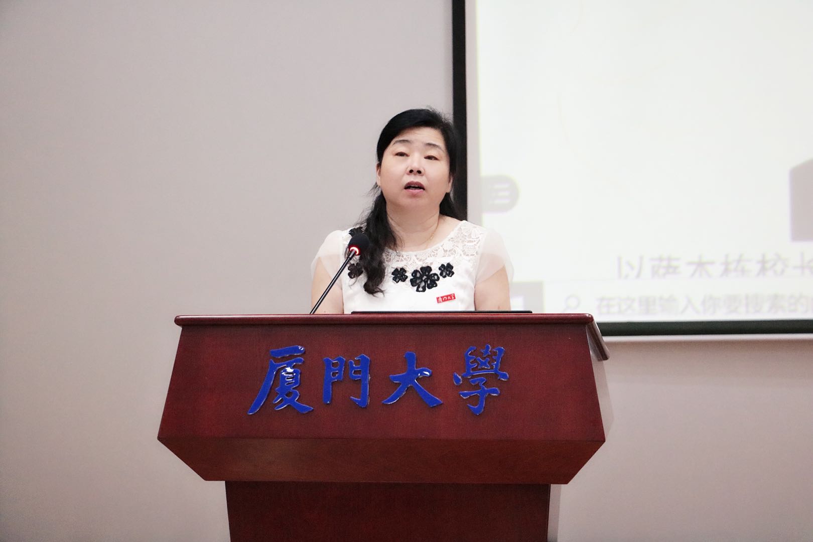 典礼最后,吴国瑛主讲了“开学第一课”——“艰难困苦,玉汝于成——厦门大学‘自强’精神解读”。吴国瑛讲到,百年厦大的“四种精神”中的“自强”精神具有深刻的含义:自校主陈嘉庚先生以“宁可变卖大厦,也要支持厦大”的精神创办厦门大学以来,“自强”二字就与厦门大学紧紧相连,是学校宝贵的精神财富;至萨本栋校长临危受命,接掌厦大,内迁长汀,在物资匮乏、战火连绵的情况下,仍不断发展壮大学校规模,“筚路蓝缕,再启黉舍,不畏艰难,弦歌不辍”,“事无大小,都要亲为或与闻”,兴办了土木工程系、机电工程系。正是自强不息的精神代代相传,才最终成就了“南方之强”的美名。吴国瑛特别强调,在厦门大学建校一百周年之际,习近平总书记向厦门大学发来贺信,要求厦门大学“为全面建设社会主义现代化国家、实现中华民族伟大复兴的中国梦作出新的更大贡献”。吴国瑛勉励大家,作为新时代的青年,既生逢其时,也重任在肩,我们要有迎难而上的勇气,更要有坚韧不拔的恒心,以国家需求为己任,以民族复兴为梦想,脚踏实地,奋勇拼搏!