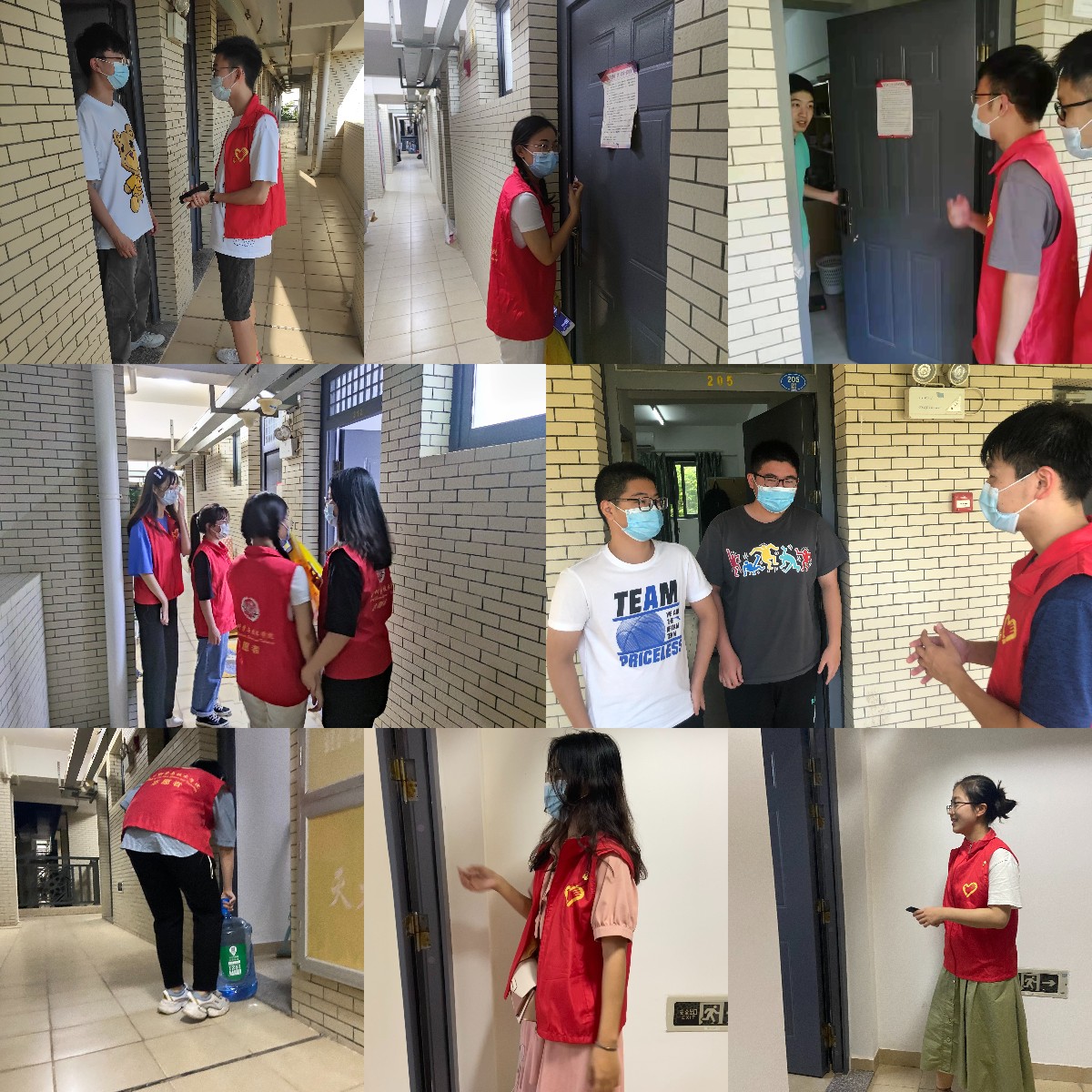 在思明校区,学院研究生党员主动加入了海韵8、12、14等多个抗疫先锋临时党支部,并担任支部书记、组织委员、宣传委员等职务,多次走访学生宿舍、了解学生需要、关心学生心理状况,督导垃圾分类,还为海韵毕业班学生预约面试房间。学院研究生党员也积极加入到海韵学生食堂和学习共享空间的志愿者队伍中,协助进行体温测量、维持秩序、引导人群和提醒落座间距。虽然在疫情期间无法前往实验室进行科学研究,但是研究生党员们积极投身抗疫斗争,用具体行动诠释了共产党员的担当。