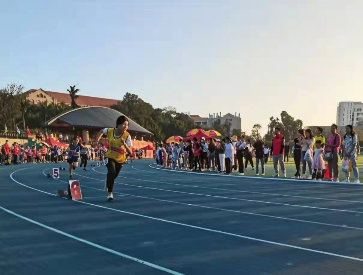 赛场上,运动员们挥洒汗水、拼搏冲刺;赛场下,教师志愿者们也热情的递水、加油鼓劲,组成电子人的别样风景。