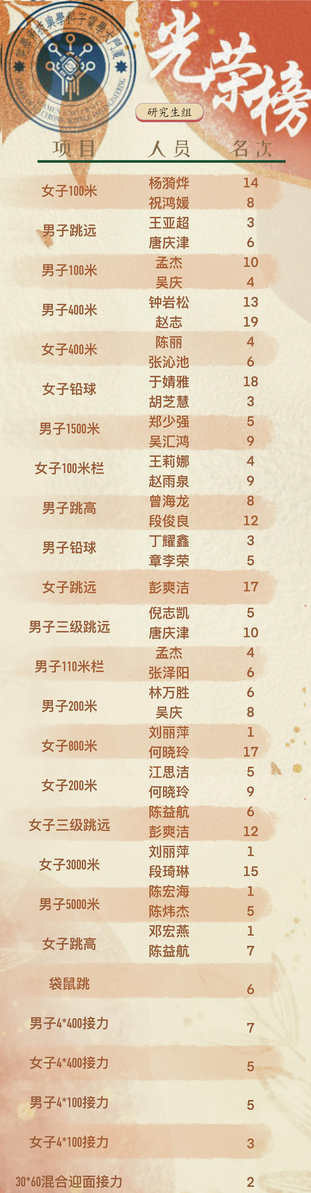 未觉池塘春草梦,阶前梧叶已秋声。11月13日上午,厦门大学第56届学生田径运动会在翔安校区圆满落下帷幕。在这一天半的激烈角逐中,芯青年们奋勇争先,挥洒汗水,获得了耀眼的成绩:
