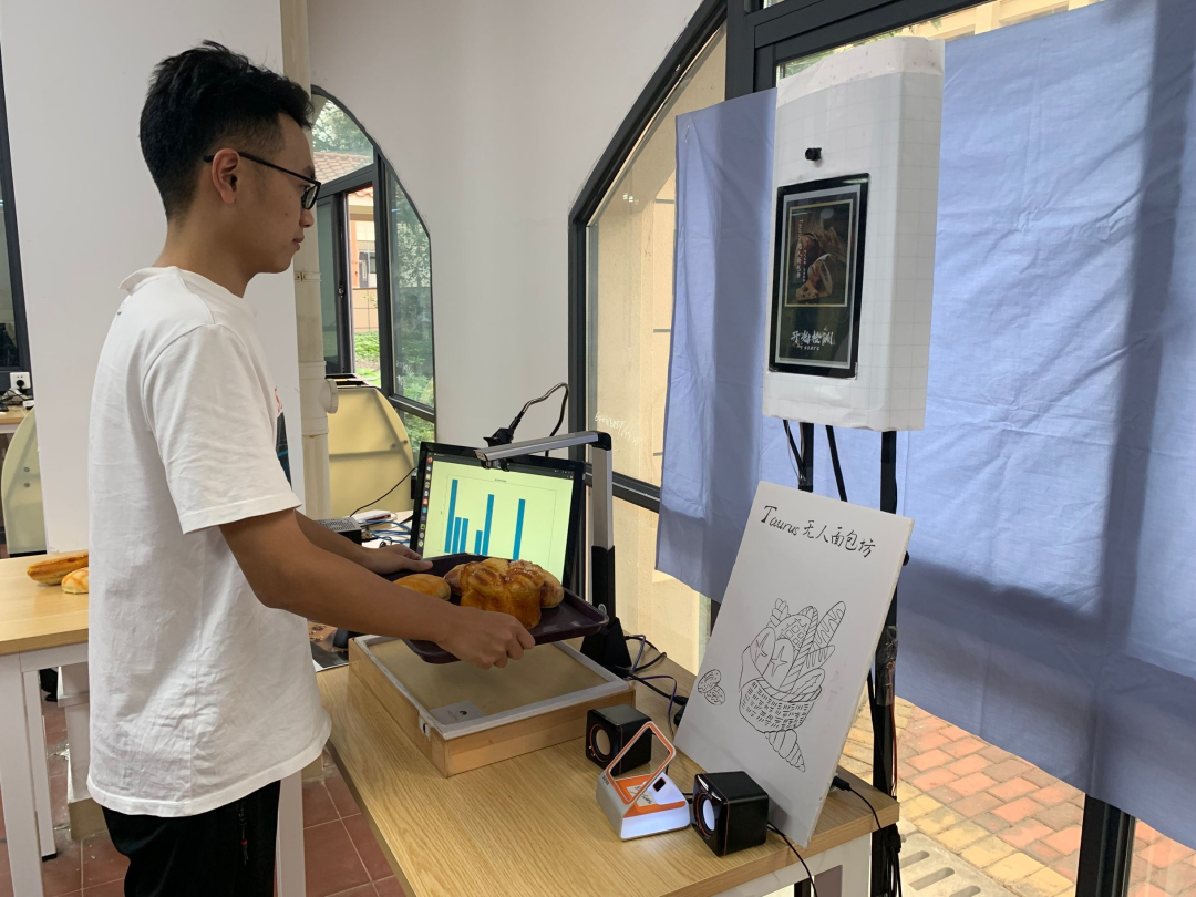 “凰月流芯”创新团队由我院2019级本科生林朴坚,廖元熙,黄添豪三名同学组成(指导老师:林和志高级工程师)。参赛作品“Taurus无人面包房”,主要实现了无人面包房中方便快捷的“放、支付”两步自动结算。作品由Taurus自助收银终端、面包识别台、和Linux服务器三个子系统组成。作品基于海思嵌入式NNIE深度学习硬件加速引擎实现快速面包检测,基于Qt实现收银终端交互界面及人性化语音提示,采用刷脸支付和扫码支付两种自助结算方式,并实现销售信息数据库的部署等功能。作品较好的完整性和较高的展示度获得了评委的关注与好评,展现了厦大学子过硬的技术实力。