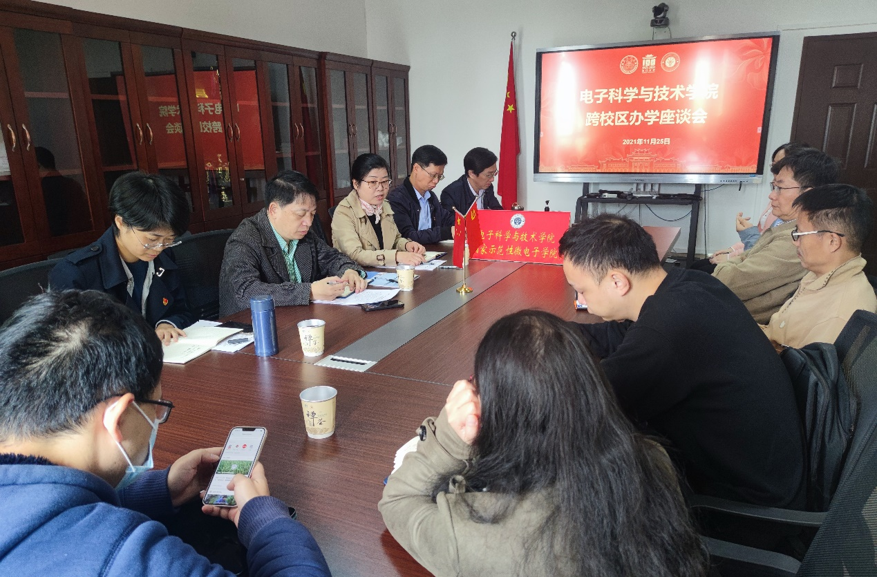 座谈会上,电子工程系系主任罗正钱、电子科学系系主任蔡淑惠和电磁声学研究院副院长朱锦锋汇报了新条件下跨校区办学的工作开展情况,汇报围绕学科建设、师资队伍建设、教学工作以及在办学过程中遇到的瓶颈、困难和挑战展开。