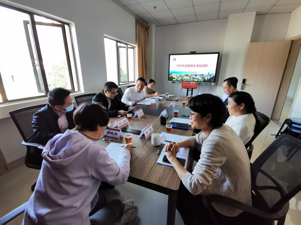 董俊对教务处一行的到访表示欢迎,介绍了学院大类招生、专业设置、课程体系和专业分流等整体情况,并详细汇报了学院教学改革、师资引进和跨校区搬迁中的实验教学保障等人才培养质量保障工作。