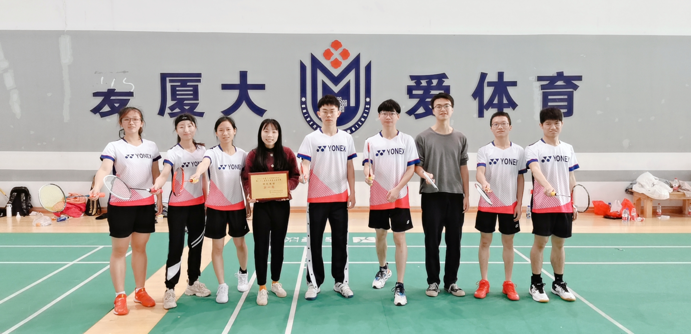 近日,在2021年厦门大学翔安校区第二十二届羽毛球混合团体赛中,我院研究生羽毛球队积极备战,奋勇拼搏,最终突破自我,取得了翔安校区第一名的历史最佳成绩。