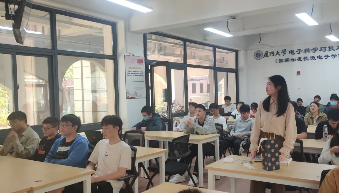 3月13日下午,厦门大学电子科学与技术学院在翔安校区博学二党团活动室举办“党建带团建”系列活动之“芯青年,颂诗文,感悟赤子之心”学习活动。电子科学与技术学院本科生第一党支部党员和2020级电子信息工程团支部团员积极参与本次活动。活动中,由范帮旭同志向团员们分享以爱国和革命为主题的诗文,团员们认真听讲并发表感悟。