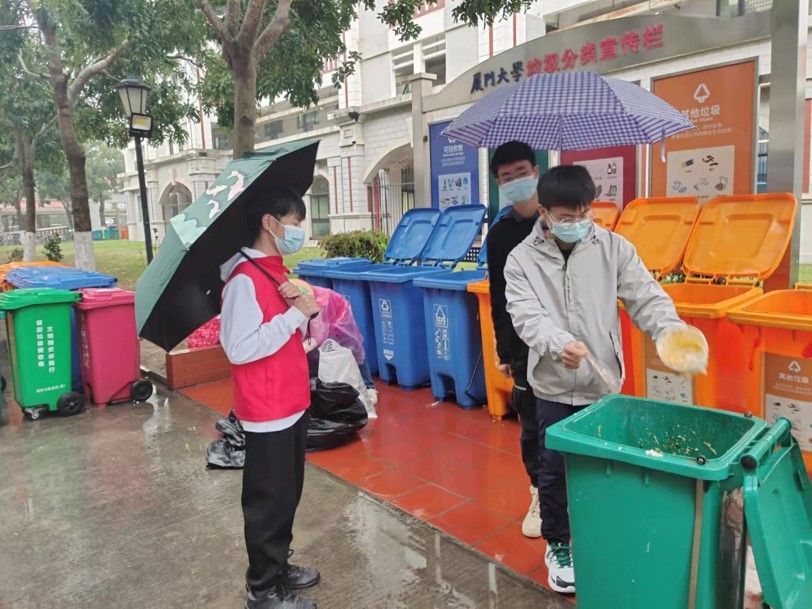 在突如其来的疫情面前,在取消堂食的情况下,芯青年党员防疫突击队主动参与到了垃圾分类督导员这一志愿活动当中。尽管近日连续降雨,志愿者们依旧准时上岗,为疫情下的各位同学以及负责垃圾分类的保洁叔叔阿姨带来了帮助。