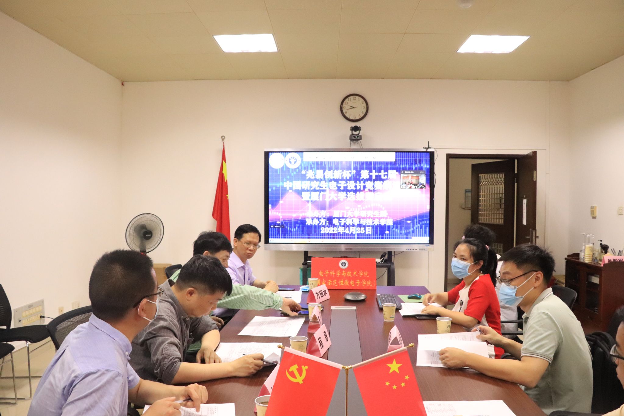 本次会议通过腾讯会议在海韵和翔安两个校区进行连线同步开展,电子科学与技术学院院长陈忠、党委副书记方银水、研究生院胡雄老师、历届研电赛资深评委程恩教授、电子科学与技术学院实验教学示范中心常务副主任陈华宾、廖新勤副教授、团委副书记徐爱平及50余支参赛学生团队出席会场。会议由徐爱平老师主持。
