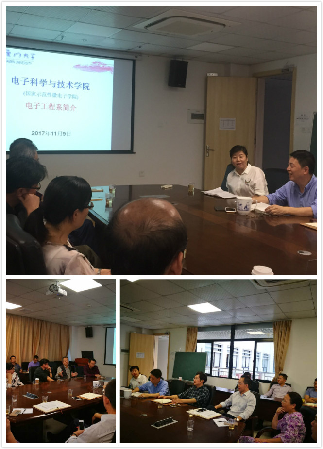 2017年11月9日下午,电子科学与技术学院组织召开电子工程系调研座谈会。学院党委书记吴国瑛,副院长陈忠、董俊、张保平出席,电子工程系近30名教师参加会议,电子科学系蔡淑惠教授,电磁声学研究院陈焕阳教授前来座谈交流。会议由副院长陈忠主持。