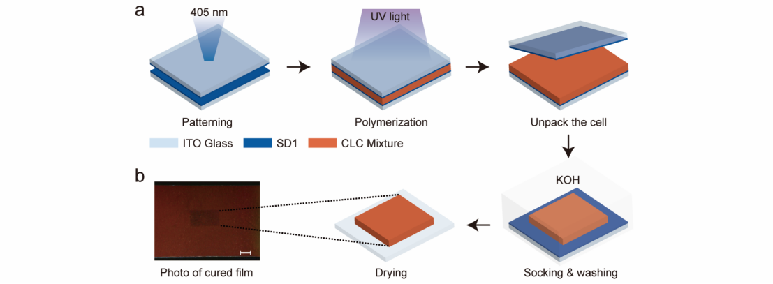 图1 图案编码的湿度响应型CLCP薄膜的制备流程示意图