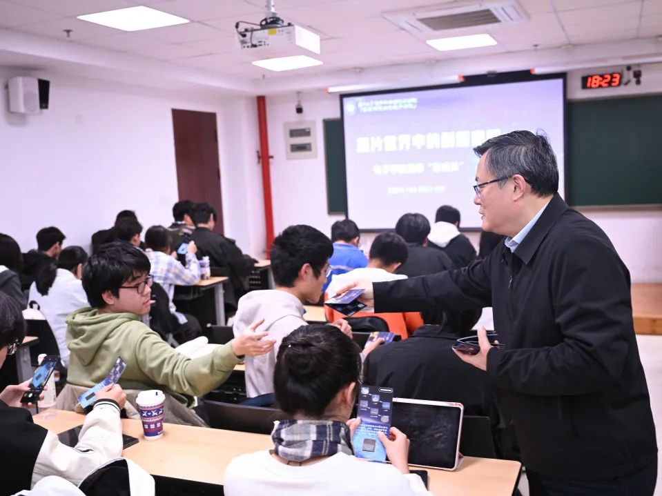 本学期15堂形式多样的课堂汇聚行业顶尖智慧,亮点纷呈:洪明辉院士引领同学们深入探索激光微纳加工的奥秘与发展前沿;孙世刚院士带大家遨游高端制造电子电镀的广阔天地;华润微电子总裁李虹以独特的视角,为同学们讲述求“芯”探“路”中的管理模式;厦门优迅芯片股份有限公司董事长柯炳粦引导大家走进芯世界,点燃芯梦想;国投智能(厦门)信息股份有限公司董事长滕达带领同学们走进国投智能重点企业,亲身体验智慧大平台的魅力.....一系列讲座、企业实景参观、实验室动手操作的全新课堂体验,为不同专业的学生们揭开了芯片技术神秘的面纱,广受师生好评。