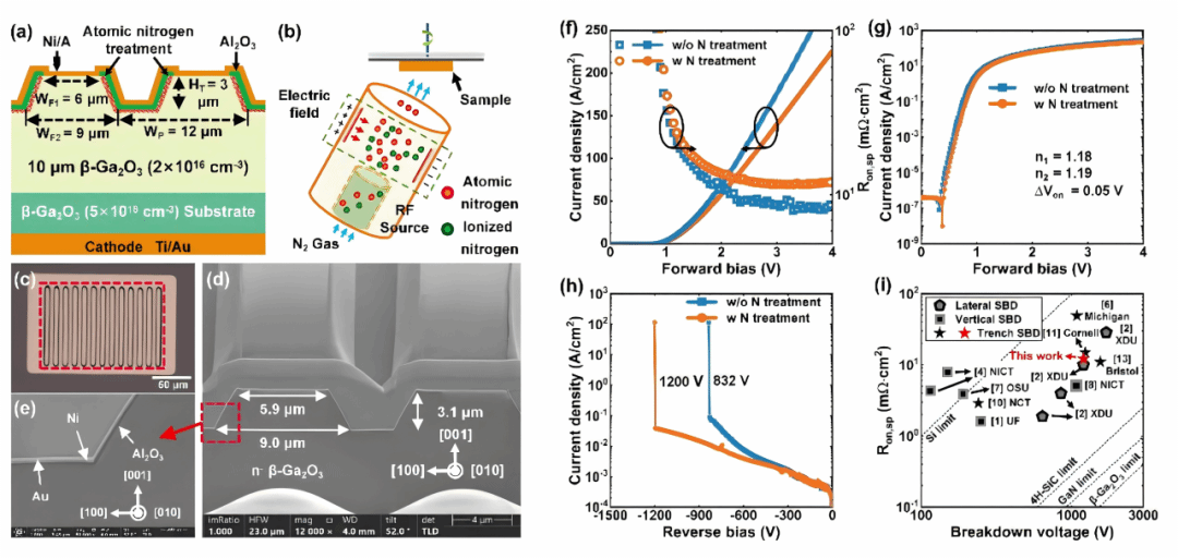 图1 沟槽型β-Ga2O3 SBD结构和性能