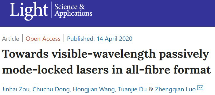 近日,我院罗正钱教授课题组在可见光超快光纤激光研究中取得重要进展,相关成果以“Towards visible-wavelength passively mode-locked lasers in all-fibre format”为题发表在国际光电子学权威期刊《Light: Science & Applications》(Light: Science & Applications 9:61,2020)上。