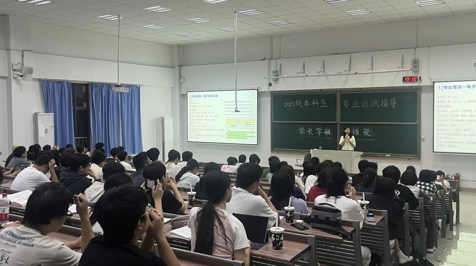 为切实做好电子信息类2023级本科生专业分流工作,帮助学生了解专业分流政策及各专业特色与发展前景,明确发展方向、做好生涯规划,5月29日-6月2日,学院策划开展了专业分流指导周系列活动,学院领导、系主任、专业教师、教学秘书、辅导员、学长学姐等为同学们带来了精彩的讲座和分享。