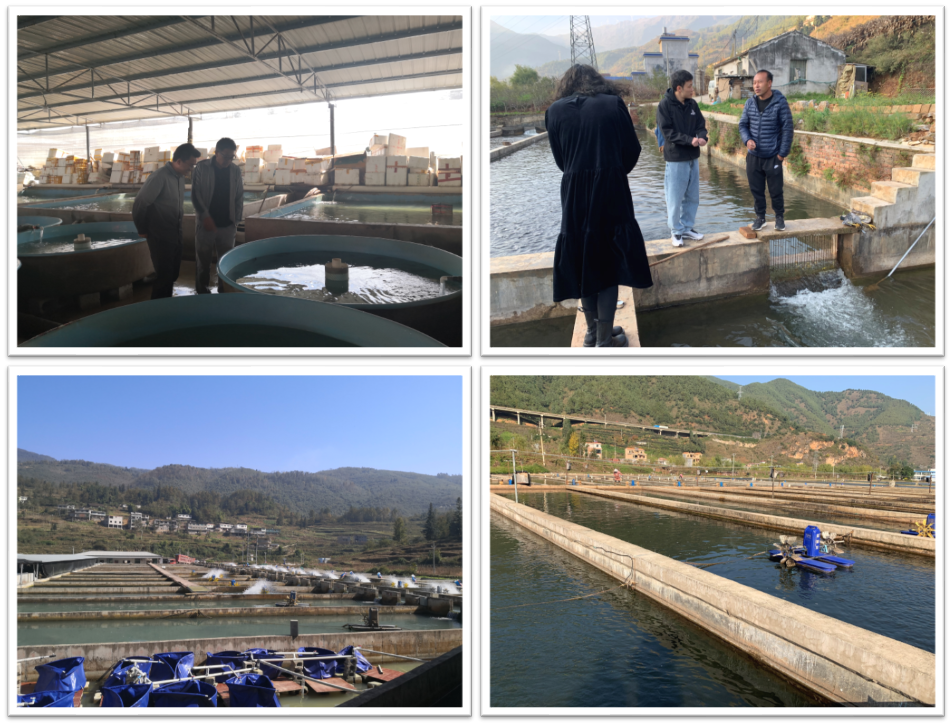 团队成员在各地水产养殖场进行实地调研
