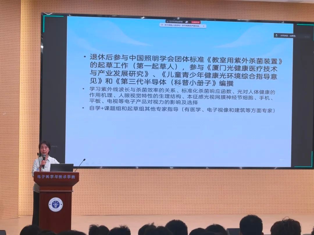 秦碧芳校友着重阐述了大学阶段自学能力培养的重要性,她认为大学是塑造个人学习能力的关键时期,其形成的自学能力为后续发展奠定了坚实基础。为让同学们更直观感受自学的价值,她以自身求学、工作经历为例,讲述了在学习和工作中不断运用自学能力攻克难题的经历。从校园钻研到职场实践,她凭借扎实的专业知识与自学能力,成为众多国家标准的第一起草人。即便退休后,她依然投身研究,持续参与标准起草工作,用实际行动诠释了 “学无止境,学而成才” 的人生哲理。