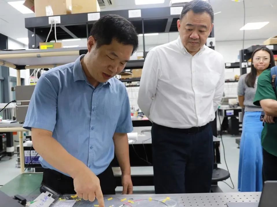 讲座结束后,滕达在学院老师的陪同下,先后前往了德旺图书馆和文宣楼实验室,共同探讨科研的未来方向和技术的应用前景。此次深度交流彰显了校友与母校深厚的感情,激励师生们在科学探索的广阔天地中扬帆起航。