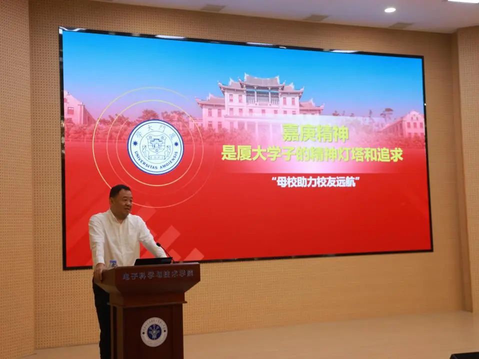 7月4日,一场聚焦于人工智能领域的精彩讲座在电子科学与技术学院南存钿楼4楼报告厅举行。讲座特邀国投智能(厦门)信息股份有限公司董事长滕达作为主讲人,以“走进人工智能的世界—母校助力校友远航”为主题,为师生们呈现了一场关于人工智能发展历程、应用前景以及安全探索的全面解析。厦门大学厦门校友会企业家分会、厦门大学校友会电子分会校友代表和学院老师共同参与本次讲座。活动由学院党委书记石慧霞主持。