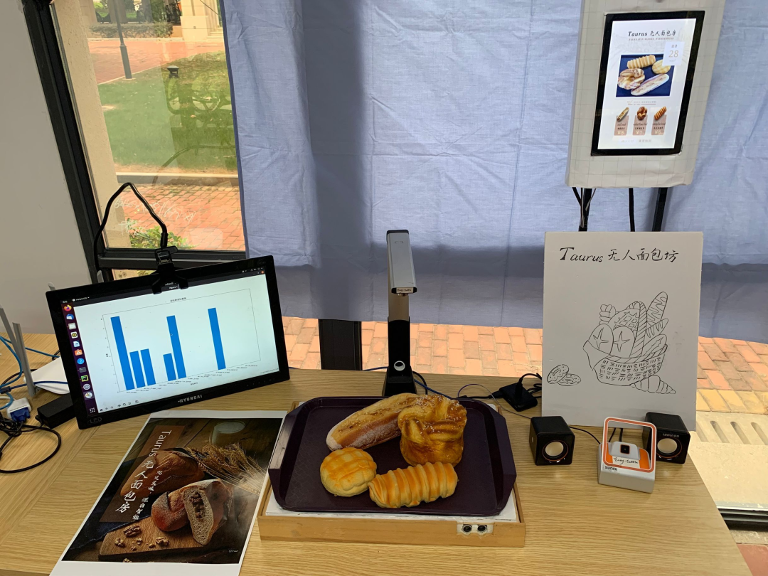 “凰月流芯”创新团队由我院2019级本科生林朴坚,廖元熙,黄添豪三名同学组成(指导老师:林和志高级工程师)。参赛作品“Taurus无人面包房”,主要实现了无人面包房中方便快捷的“放、支付”两步自动结算。作品由Taurus自助收银终端、面包识别台、和Linux服务器三个子系统组成。作品基于海思嵌入式NNIE深度学习硬件加速引擎实现快速面包检测,基于Qt实现收银终端交互界面及人性化语音提示,采用刷脸支付和扫码支付两种自助结算方式,并实现销售信息数据库的部署等功能。作品较好的完整性和较高的展示度获得了评委的关注与好评,展现了厦大学子过硬的技术实力。