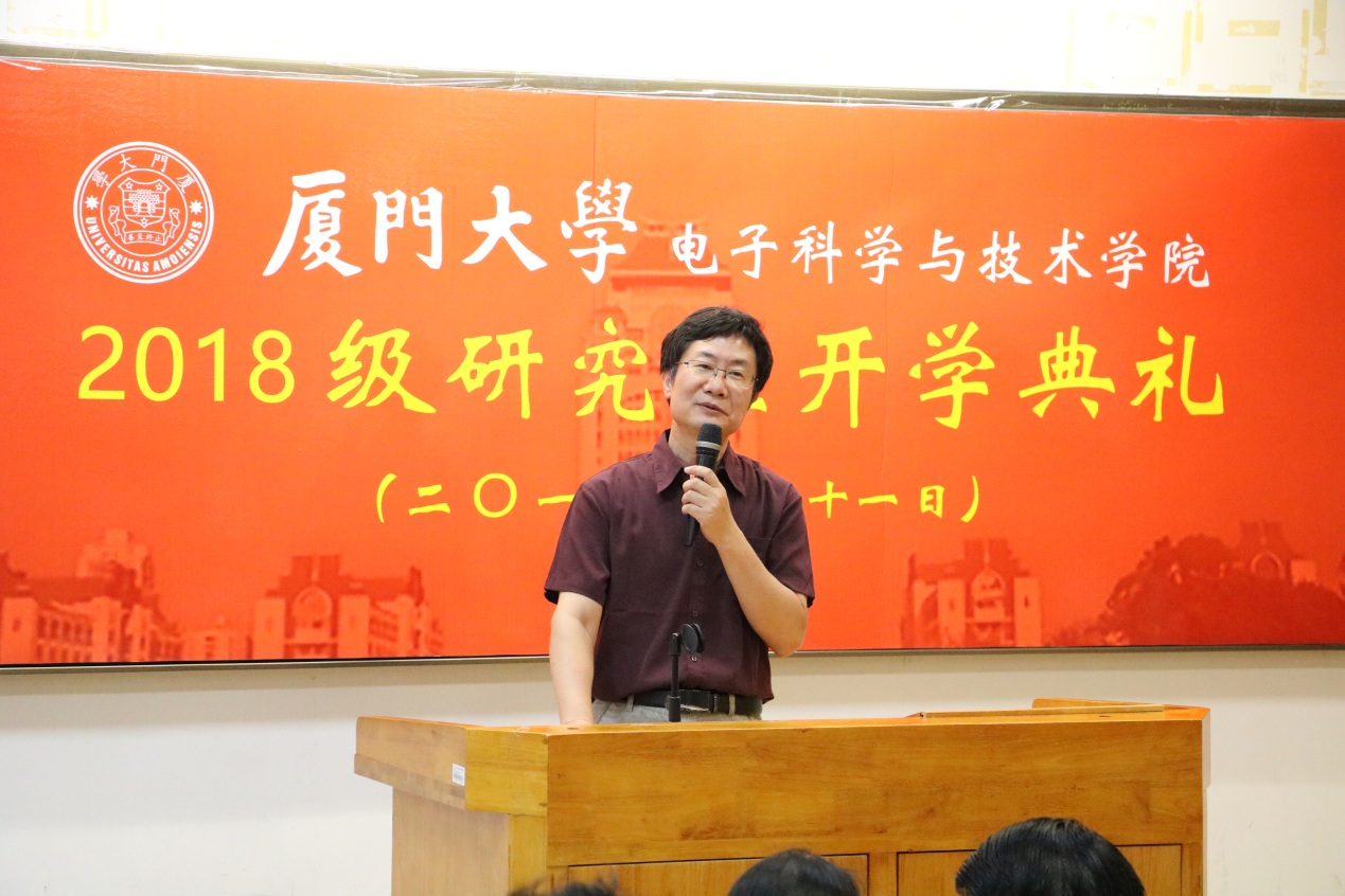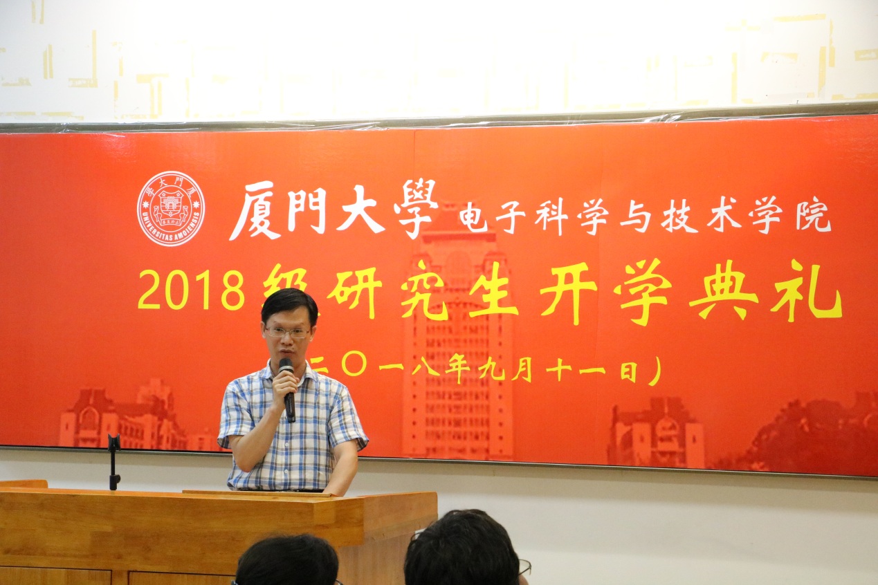 为了迎接2018级的研究生新生,让新生尽早融入新的学习生活环境,电子科学与技术学院于9月11日晚7点在海韵园物理航空大楼117室为新同学举办了学院开学典礼。院党委书记吴国瑛、副院长张保平教授、党委副书记方银水、党委副书记唐拥华、电子工程系副系主任黄文财教授、电子科学系副系主任蔡淑惠教授、团委副书记韩海雄和辅导员徐爱平老师出席本次典礼。参加典礼的还有2018级全体硕士生和博士生。本次颁奖仪式由辅导员徐爱平老师主持。